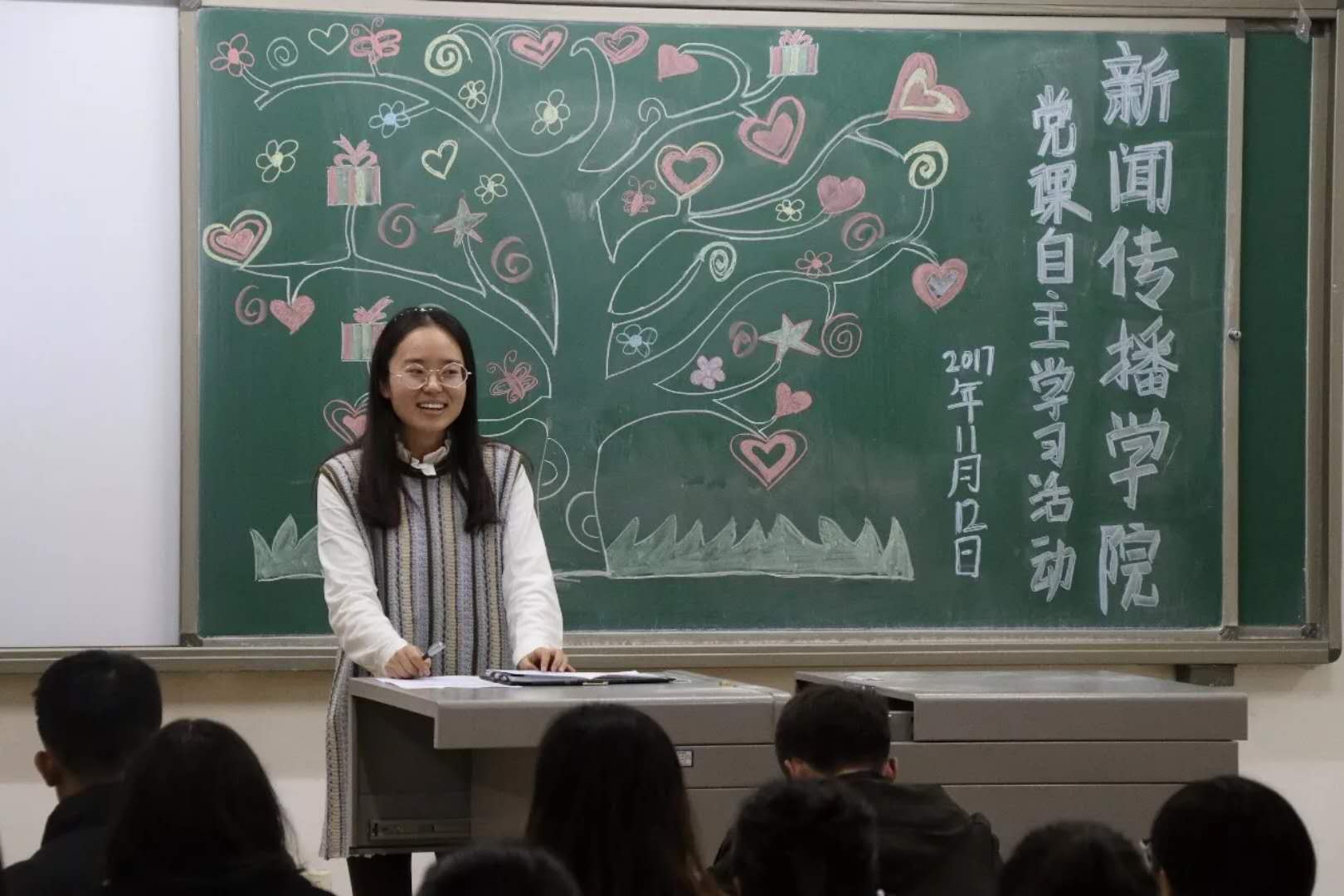 在观看影片前,杨婧向大家介绍了《建军大业》的基本内容以及演员阵容,使大家对影片有了初步认识。电影以1927年“南昌起义”这一重要历史事件为主要线索,展现了中国人民解放军建军的光辉历程。红领巾、白袖带的惨烈起义、万难险阻,九死一生的阻击战等场景使同学们震撼不已。观影结束后,杨婧谈到:战争时期,多有离别。特别是毛泽东同志与夫人杨开慧离别之时,杨开慧的一句“不要回头”催人泪下。2016级入党积极分子柯占飞同学在谈到自身与国家命运的关系时,一句“占领舆论高地,坚持真理,做党和人民的新闻工作者”赢得同学们的一致掌声。