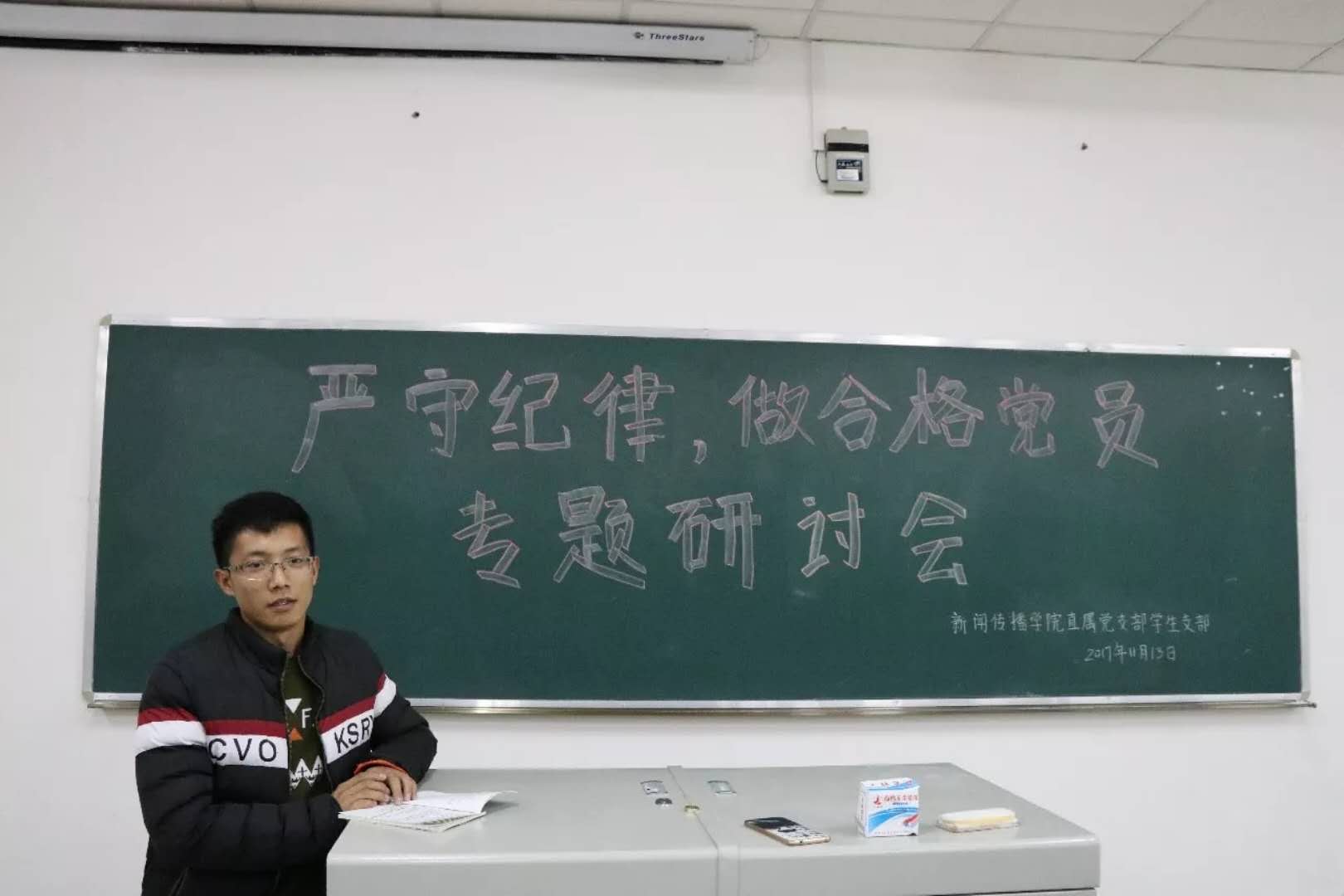 在讨论活动中,张燕婷分享了她采访的一个老红军严格要求自己的故事,这使同学们更加直观的感受到如何在生活的方方面面做到严守党纪。田进瑞同学回忆影片《建军大业》,梳理了片中人物的主要发言,并将其与近些年党的反腐工作结合,倡议所有人以后行事要公平公正公开、在生活中严守纪律。何鹏飞和于淑香则从新闻学专业出发,从记者的职业道德准则入手探讨如何做一名合格党员,使各位学员受益良多。