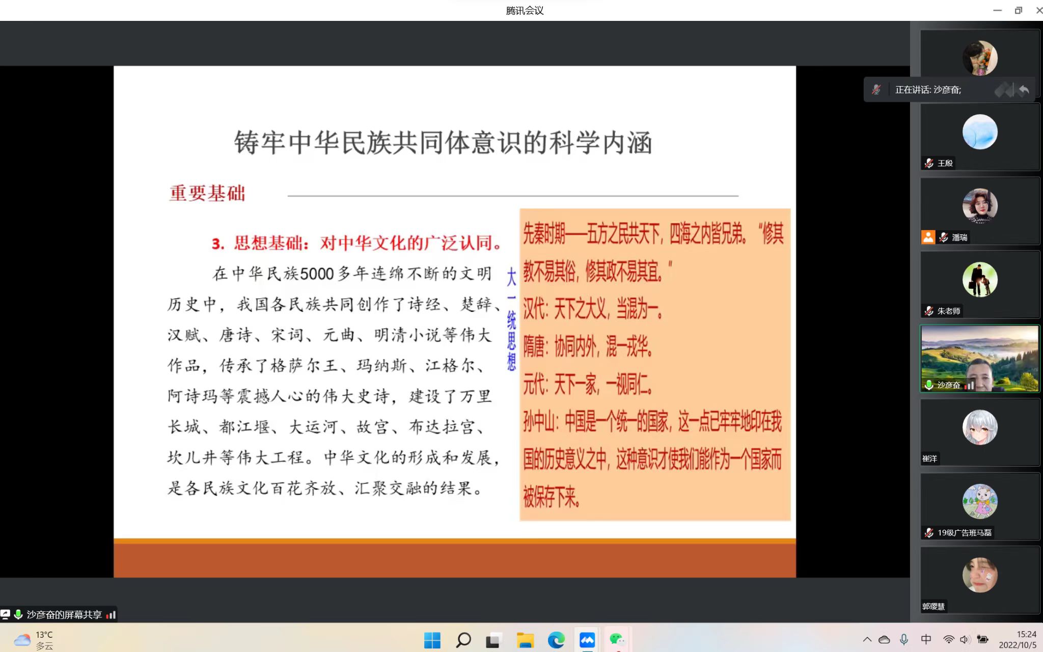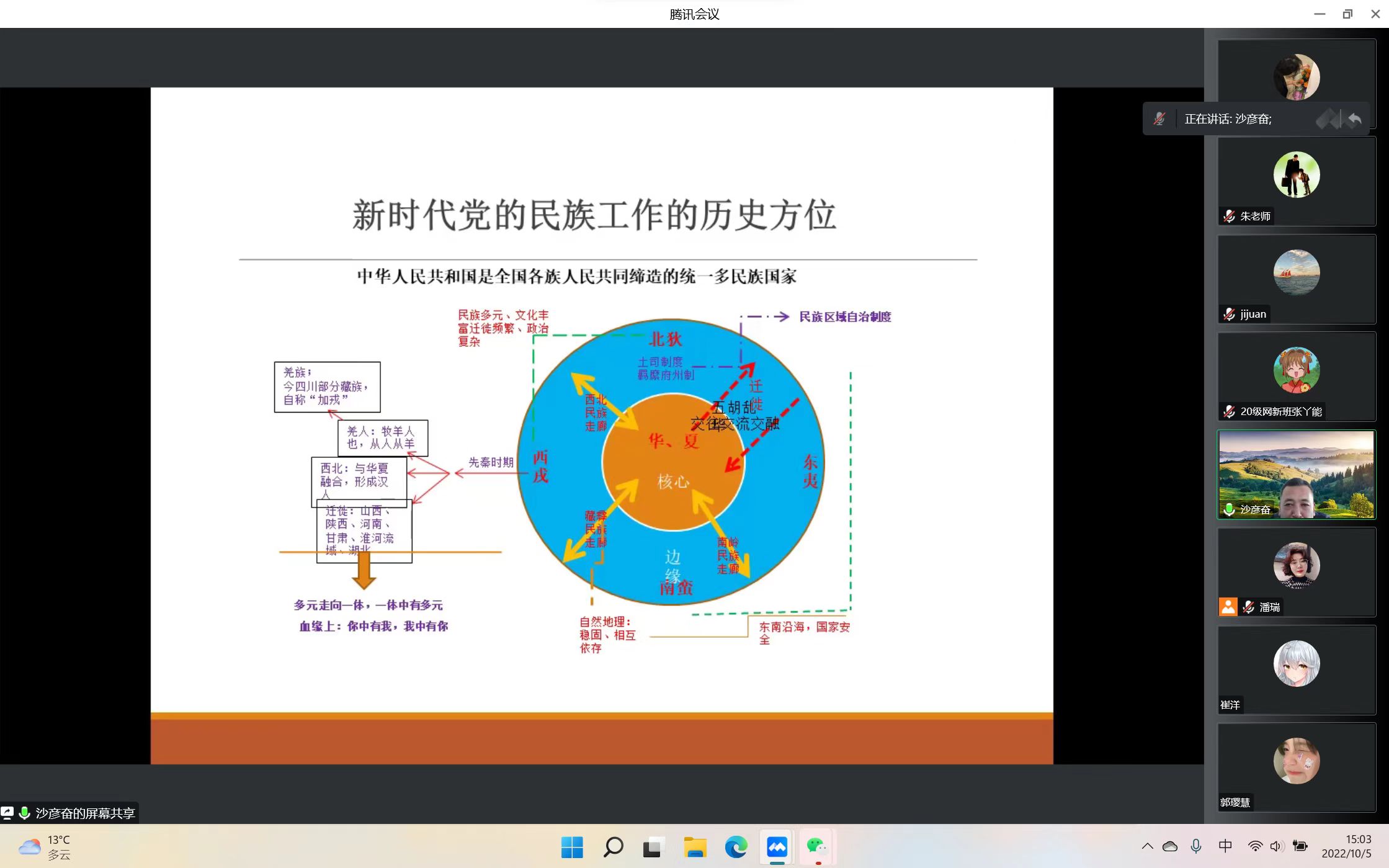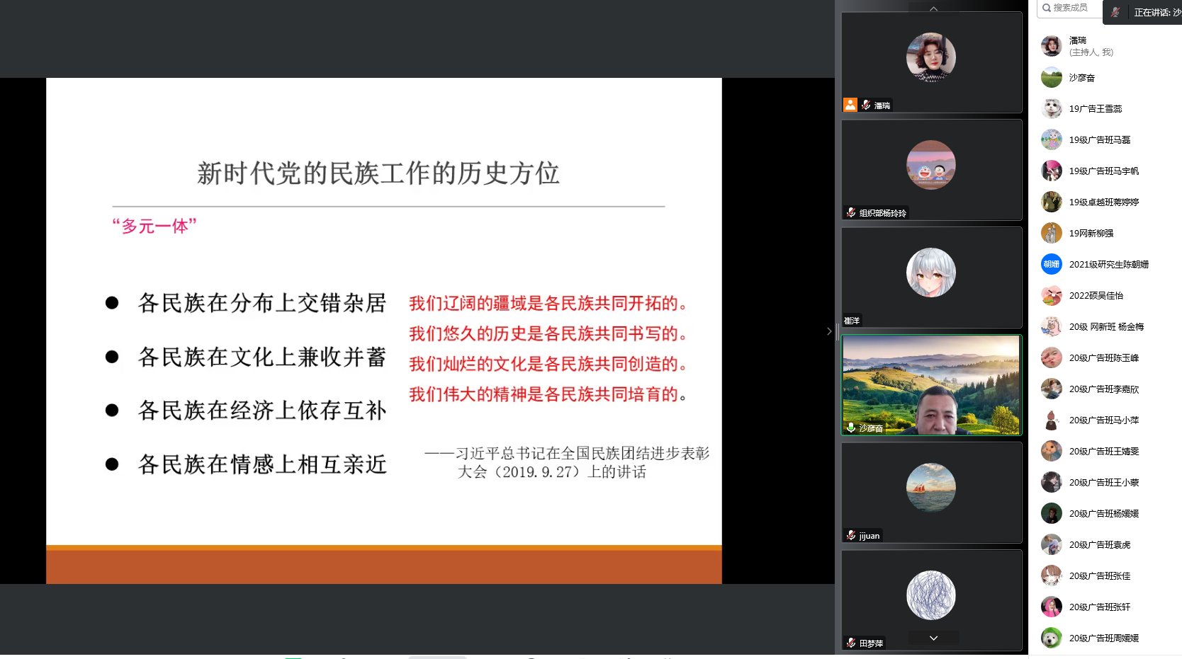 为培养员工的爱国情怀、激励全体师生振奋精神、夯实铸牢中华民族共同体意识根基,10月5日下午,公司开展了主题为“把握历史方位,铸牢中华民族共同体意识”的线上党课培训。讲座由回族研究院副教授沙彦奋主讲,公司党总支书记潘瑞主持,全体教职工、员工党员、业余党校及团学骨干培训班全体学员聆听了讲座。