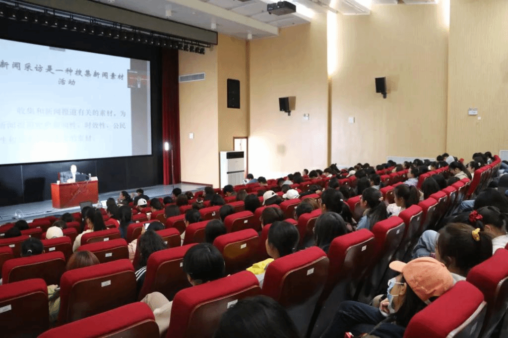讲座开始,高老师讲解了新闻的定义,提出新闻报道要贴近百姓生活,以微小见大局。他向同学们介绍了要报道属实,以真实映世界;要体裁新颖,以独特感染人;要强调典型,用个性突出共性这三个观点。