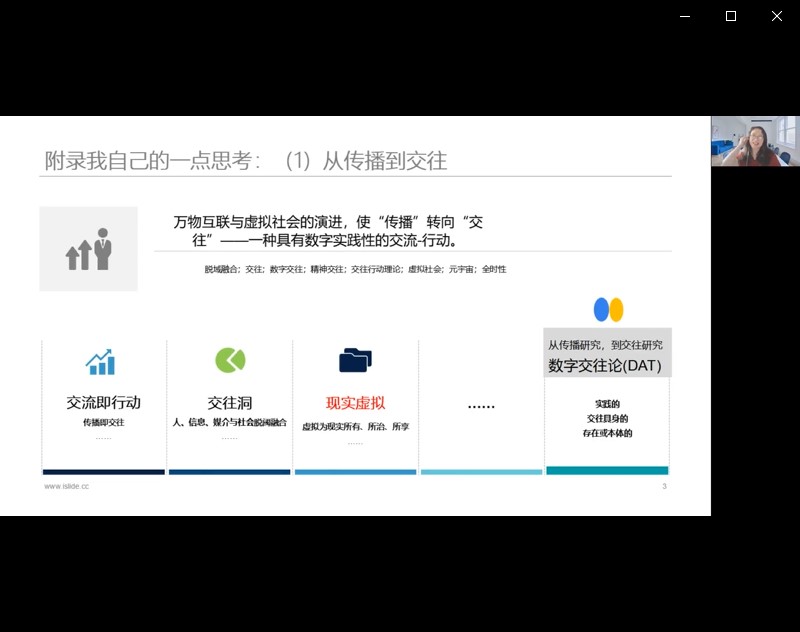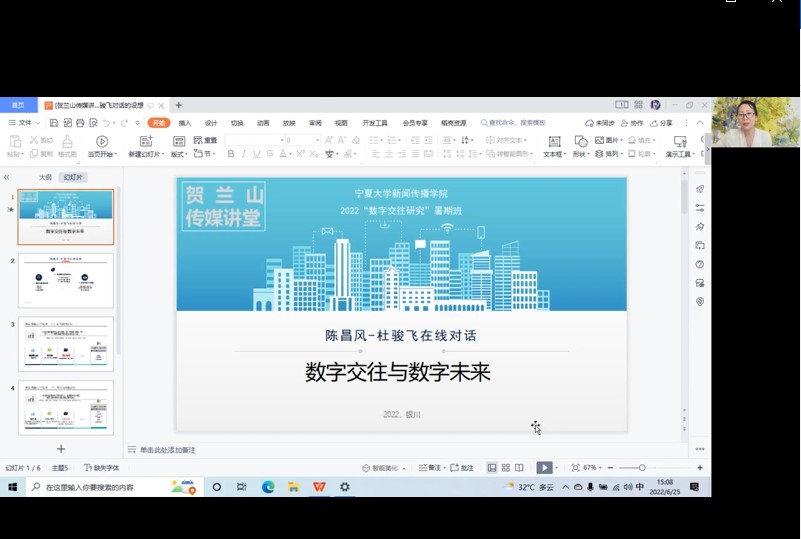 在此期间,“贺兰山传媒讲堂”暨2022“数字交往研究”暑期班顺利举办。此次暑期班共有研究生19人、优秀本科生6人参加。在暑期班的10次课程中,杜骏飞教授关于“数字交往研究”提出了许多学术性的新见解,同时分别与清华大学新闻与传播公司教授陈昌凤、中国人民大学新闻与传播公司教授彭兰进行了在线对话,南京大学助理研究员吴志远、在读博士马一琨也进行了专题讲座,新颖的授课形式和前沿的学术思想使同学们受益颇深。