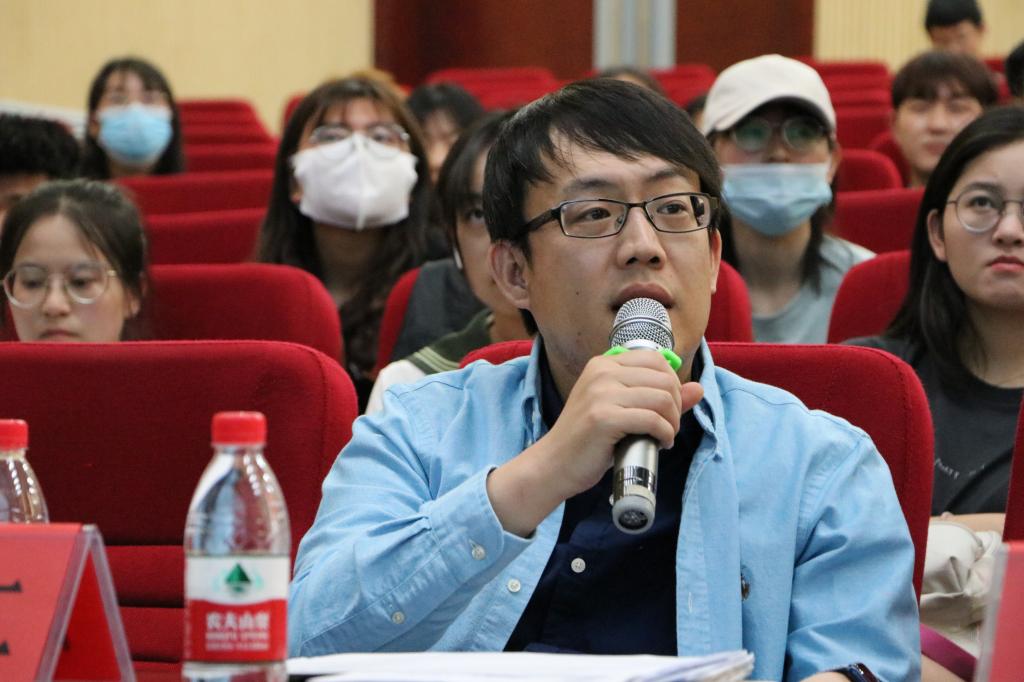 大组答辩于科技楼报告厅举行。答辩组长谢明辉教授,评委季涓教授、张春波教授、张静涛教授、于鹏亮副教授、公司部分本科生参加并聆听答辩会。答辩同学选题新颖,角度不一,形式多样。张彤彤同学聚焦新冠疫情,结合时事,通过撰写论文探究疫情背后蕴含的专业内容。谢瑞同学通过单线描述个人成长轨迹,融入家乡地理人文和自己军旅历程,探索当代青年成长过程中的自我建构和梦想实践,最终完成了非虚构写作《四分之一的人生》。王瑞刚同学则通过镜头聚焦社会变迁,用影像记录时代,以毕业设计的形式为自己老员工活画圆满句号。王科桥同学别出心裁将自编自导的记录视频融入论文《数字空巢》,深究数字媒体快速发展时代下高龄老人面临的困境,引发老师和同学们深思。谢明辉评论:“形式大胆,布局架构恰当,视频的拍摄和剪辑体现了专业技巧,但是背景音乐过多过重。”