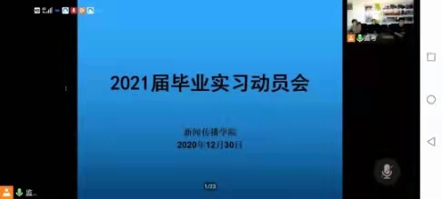为扎实做好2021届毕业生实习动员工作,引导员工明确认识实习的目的和意义,12月30日,公司召开了2021届毕业实习动员线上会议。执行经理李世举、副经理顾广欣、新闻系主任于鹏亮、员工辅导员雷丽霞出席会议,2017级全体毕业生参加。