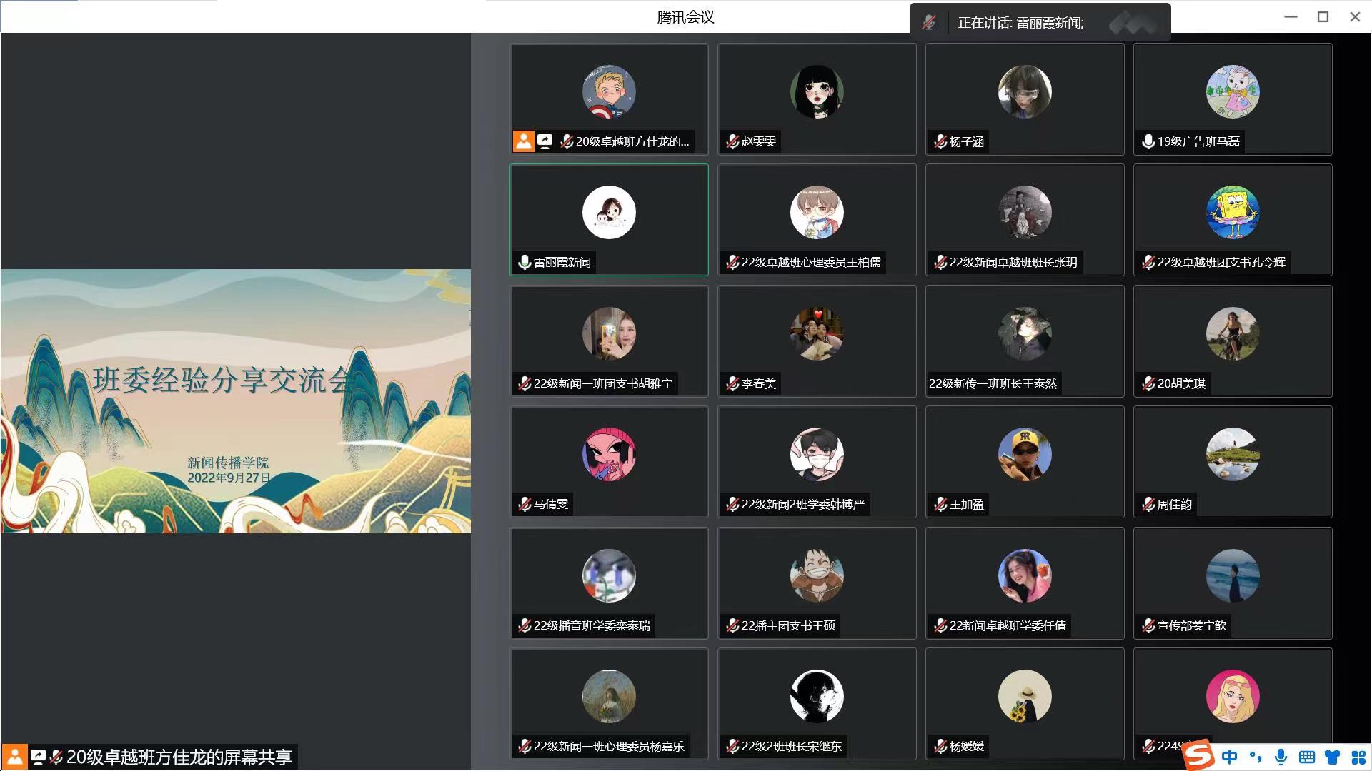 为帮助新生班委尽快熟悉工作,提升班级工作质量,9月27日晚,公司召开班委经验分享线上交流会。员工工作办公室主任雷丽霞出席会议,2020级、2019级班委代表及2022级新生班委参会,会议由员工会轮值主席马磊磊主持。