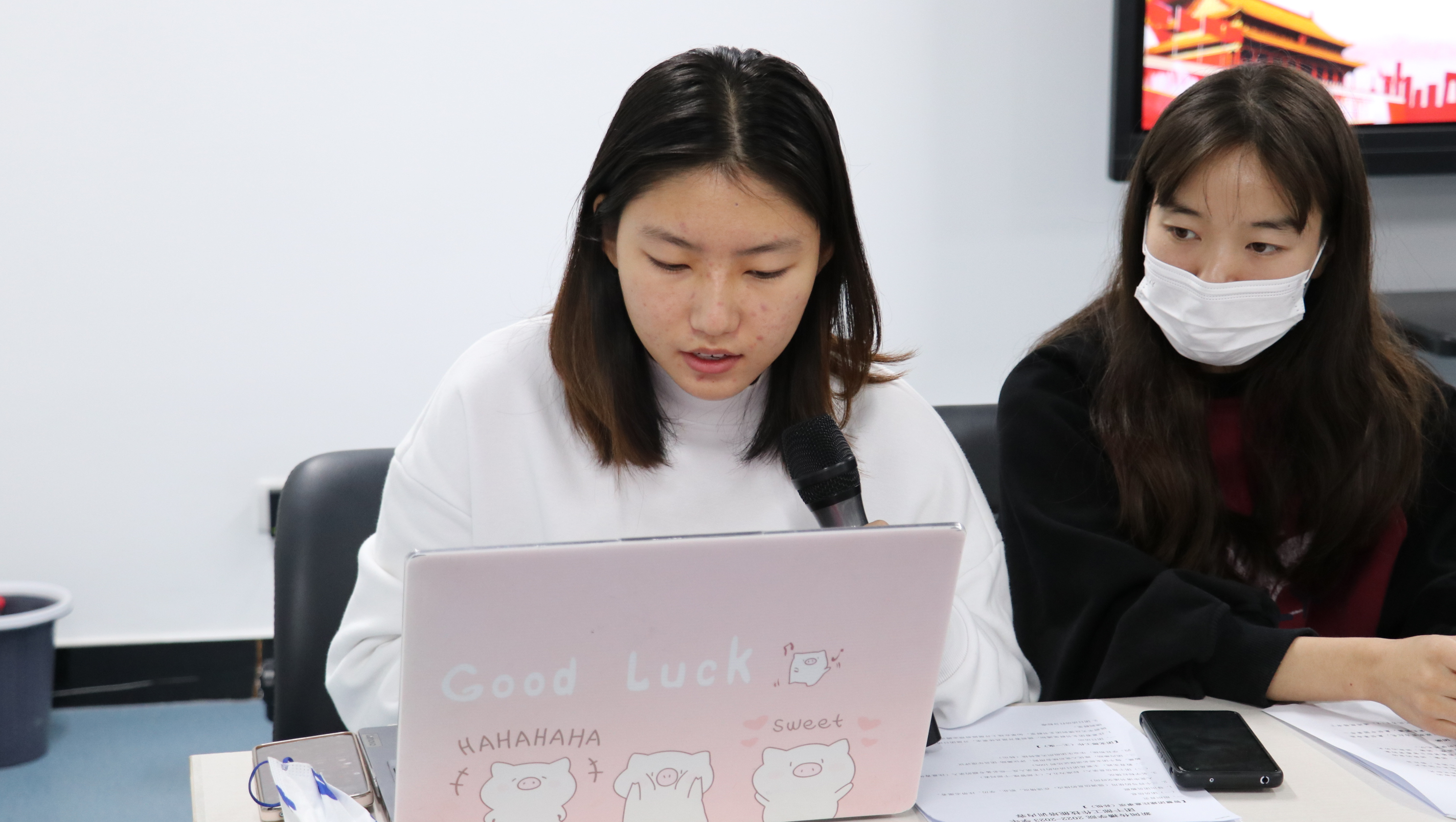 组织部工作人员孙悦、王一曳、杨敏莀分别就智慧团建、团日活动、青年大学习、学习强国,以及推优入党的量化方案等工作进行讲解,详细介绍各项活动的要求和相关评比考核标准。