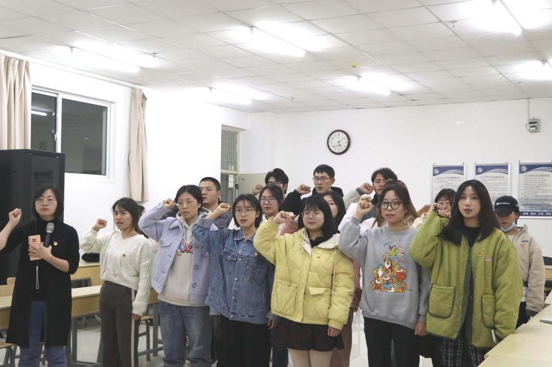 会议最后,雷丽霞带领新党员面向党旗庄严宣誓。她强调,党员同学要全面系统深入学习领会十九届六中全会精神,切实将学习激发出来的热情转化为做好本职工作的动力,要时刻与党组织保持高度一致,严格按照党员的标准要求自己,时刻牢记党员身份,践行党的宗旨,真正做到全心全意为人民服务。