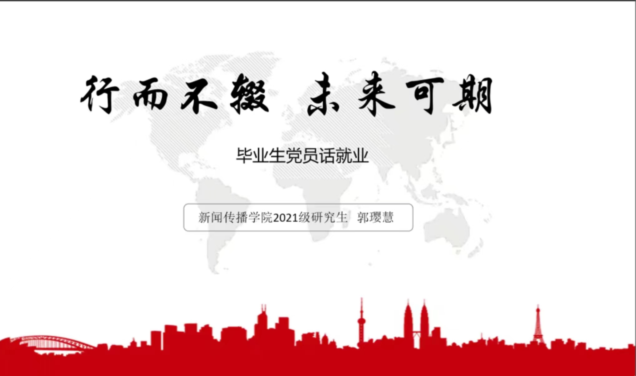 2021级研究生郭璎慧手里有6家单位的offer,最后决定与广东省一家三资企业签约。她分享了自己求职的心路历程,主要从明确就业方向,找准自己的核心优势,如何搜集信息,如何做好个人简历和自我介绍,如何准备无领导小组面试等多个角度分享了她的求职经验。她鼓励大家在就业过程中一定要保持“行而不辍,未来可期”的态度和信念。