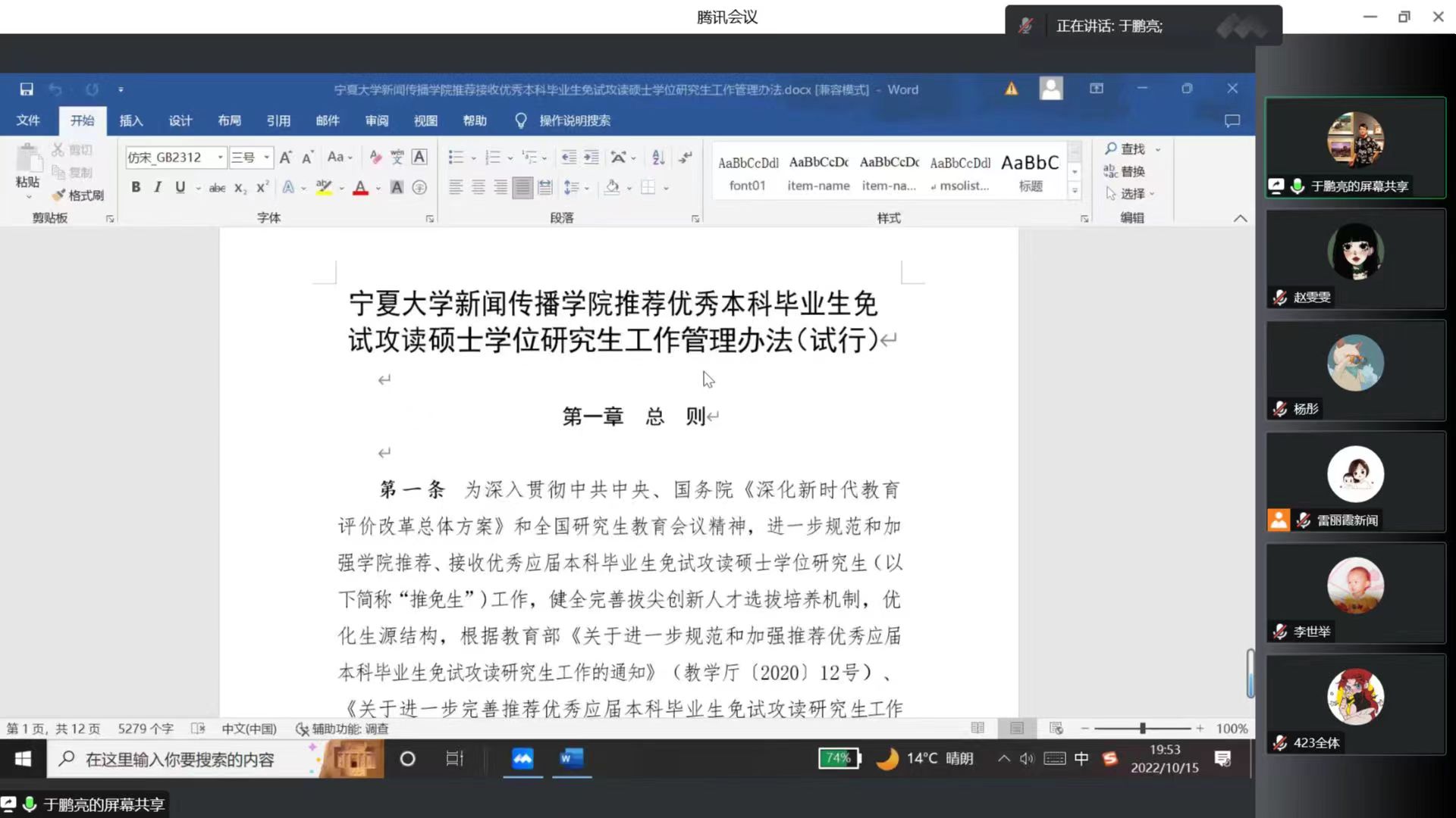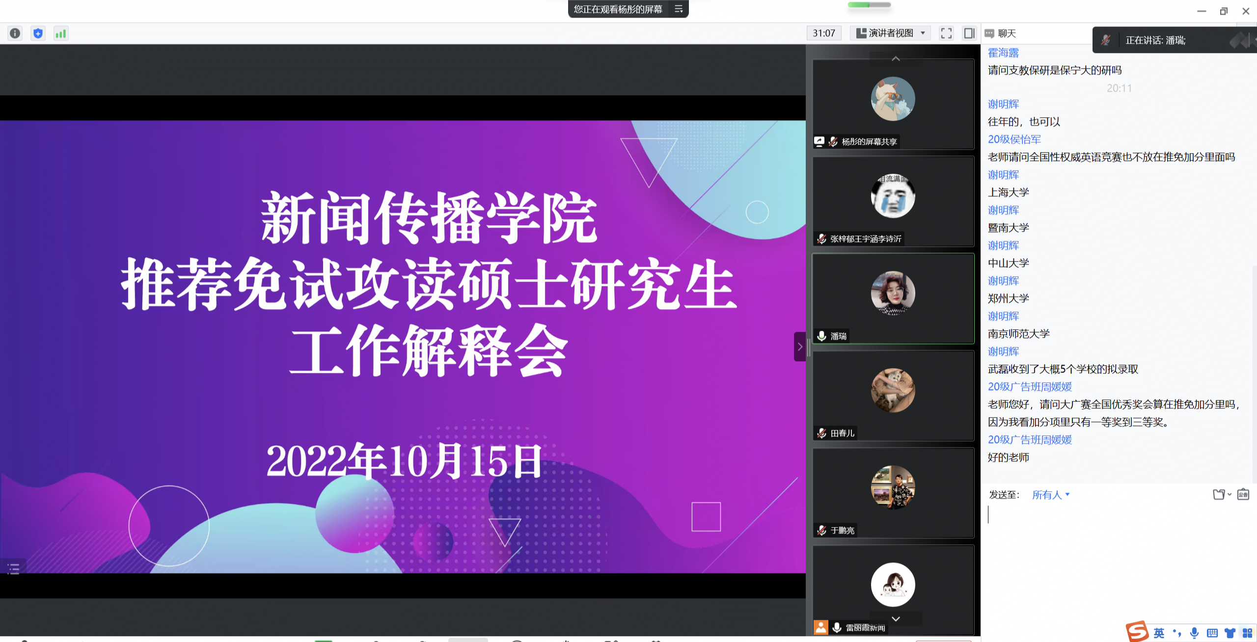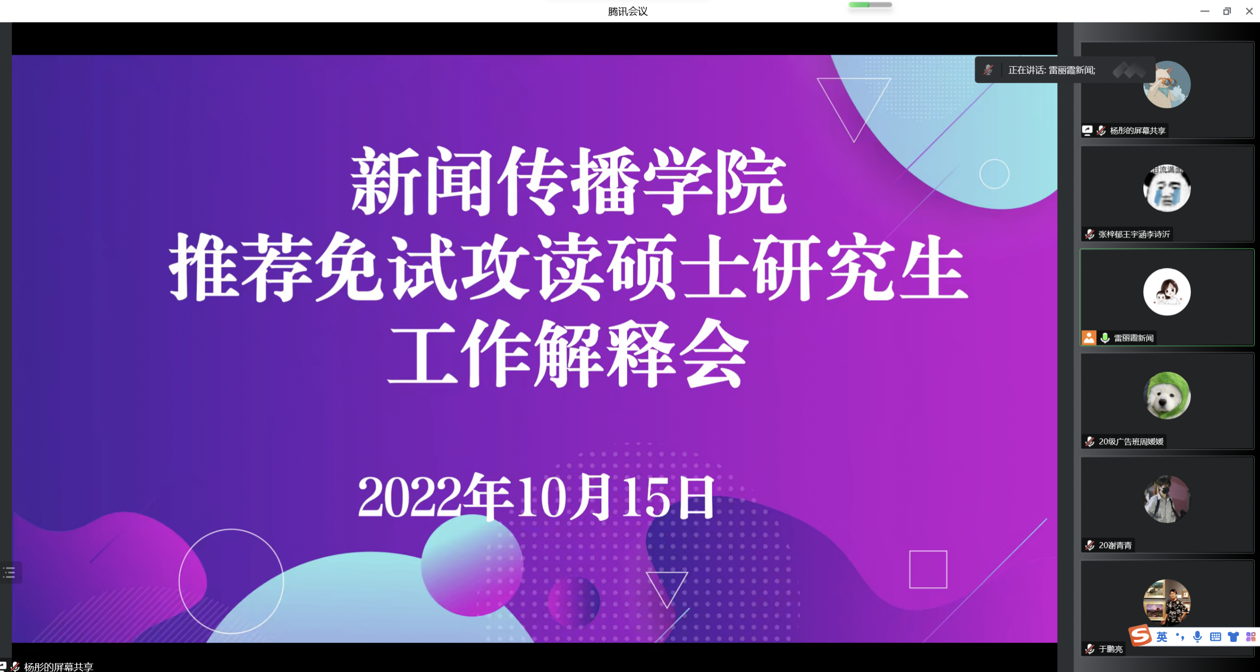 于鹏亮详细解读了《开云全站登录入口推荐优秀本科毕业生免试攻读硕士学位研究生工作管理办法》,从专业成绩、综合测评成绩、遴选总成绩和政治素养等方面介绍了免推条件,对加分项目做了进一步解释。
