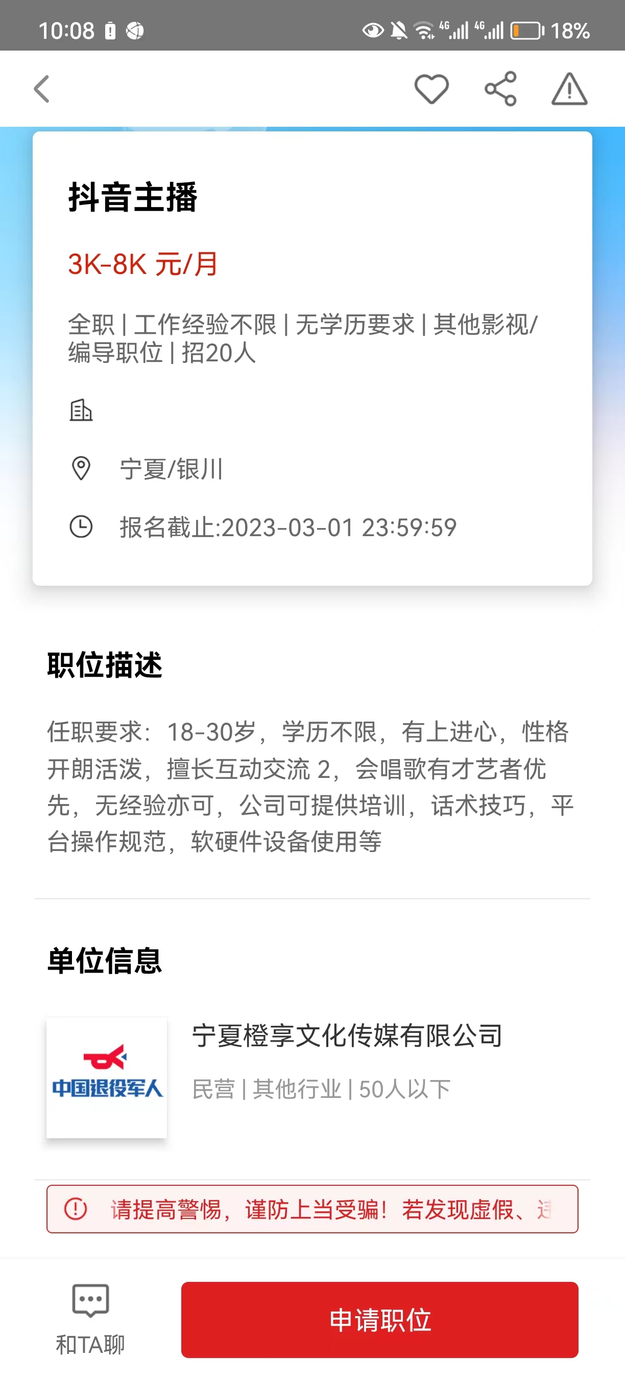 岗位:抖音主播