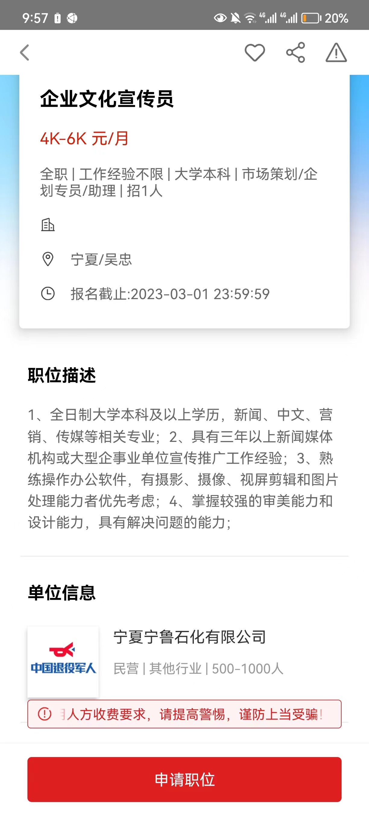 岗位:企业文化宣传员