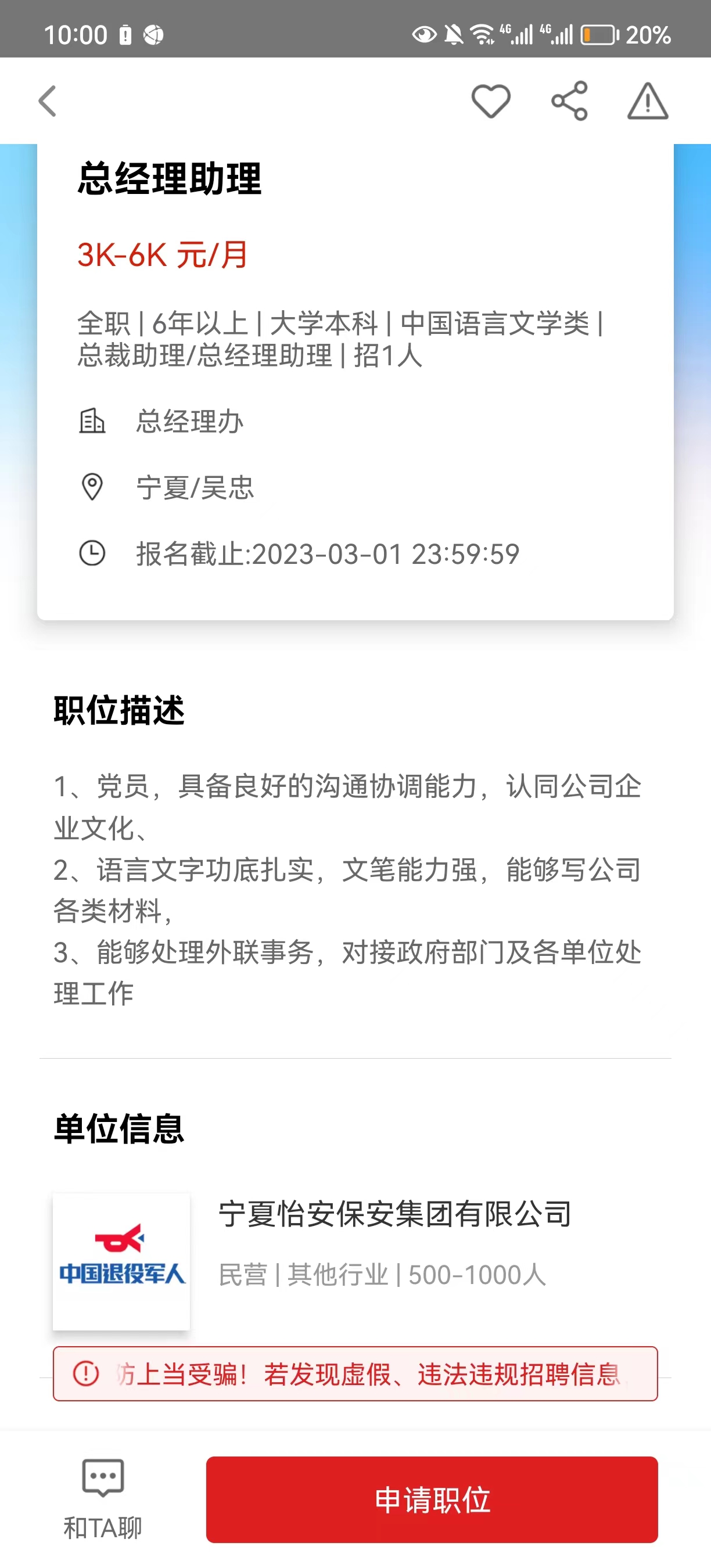岗位:总经理助理