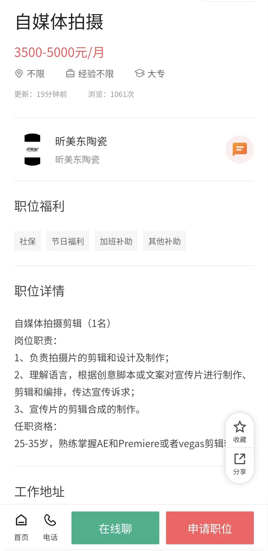 岗位:自媒体拍摄