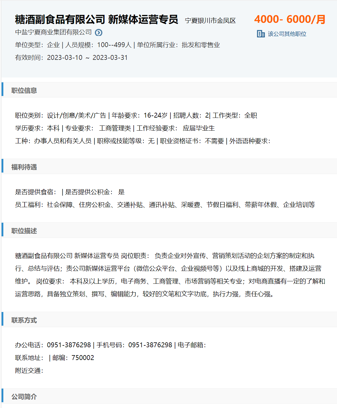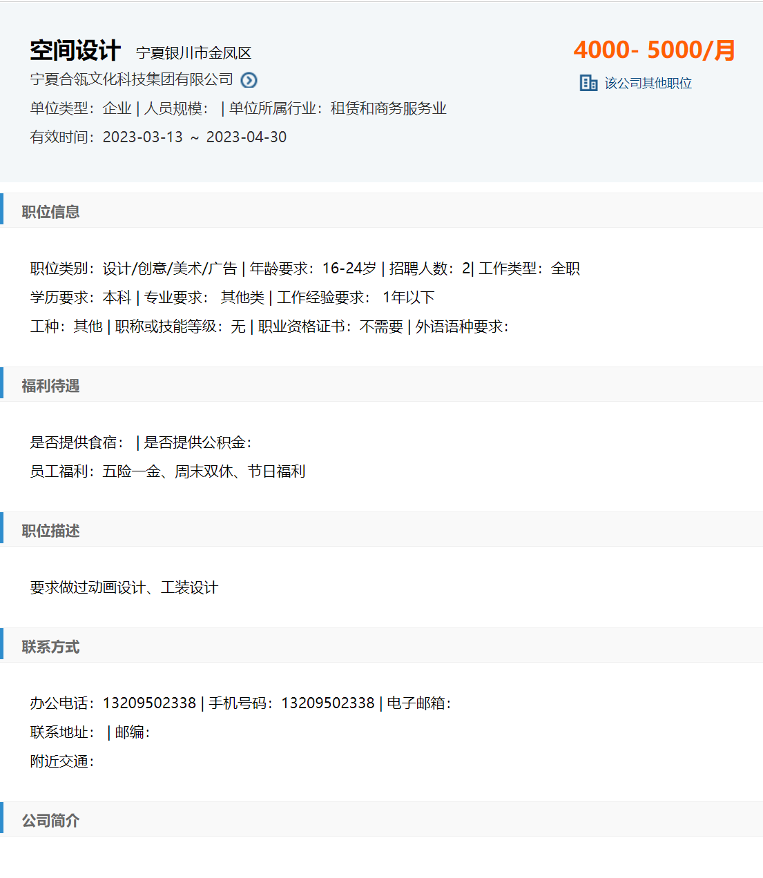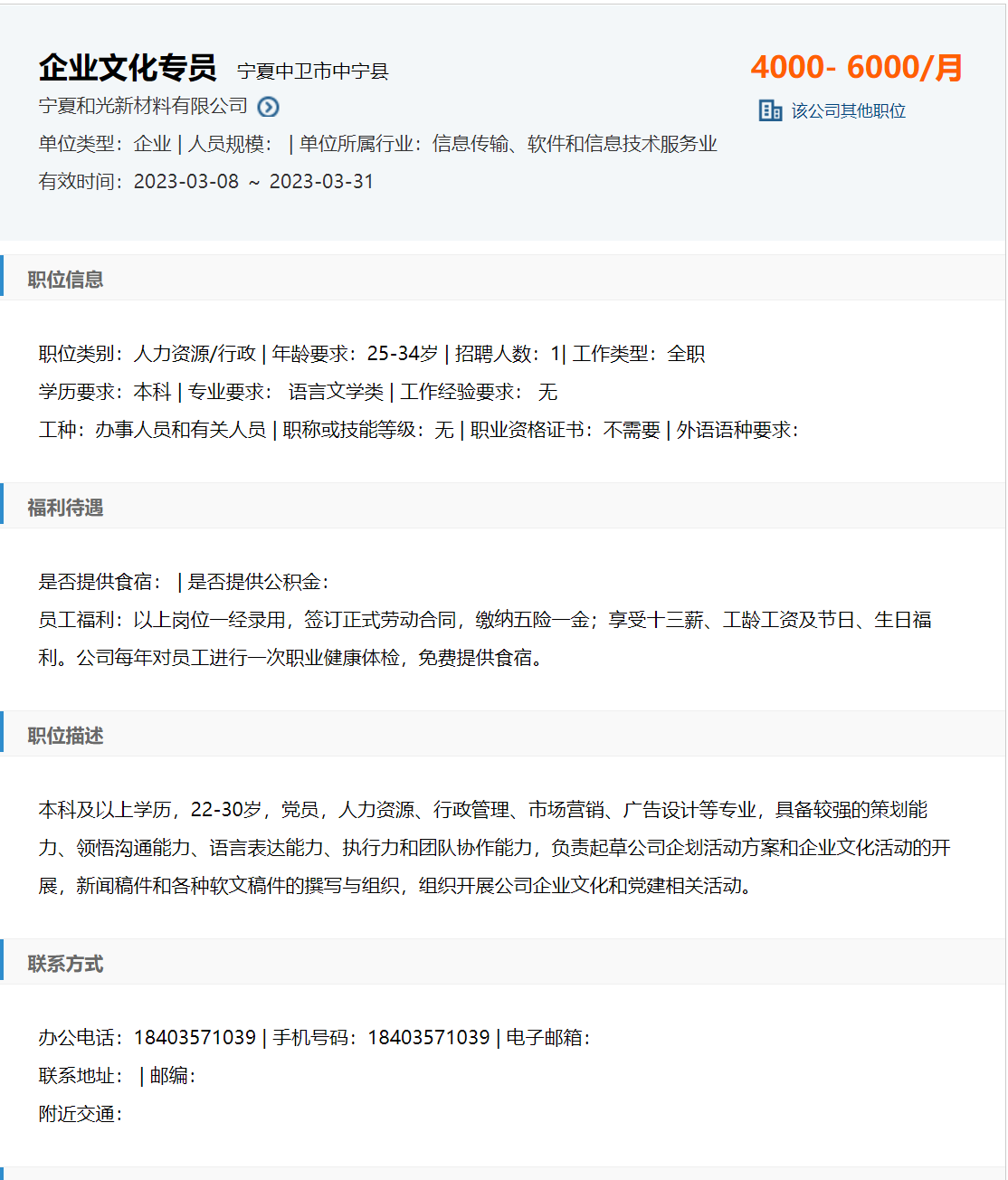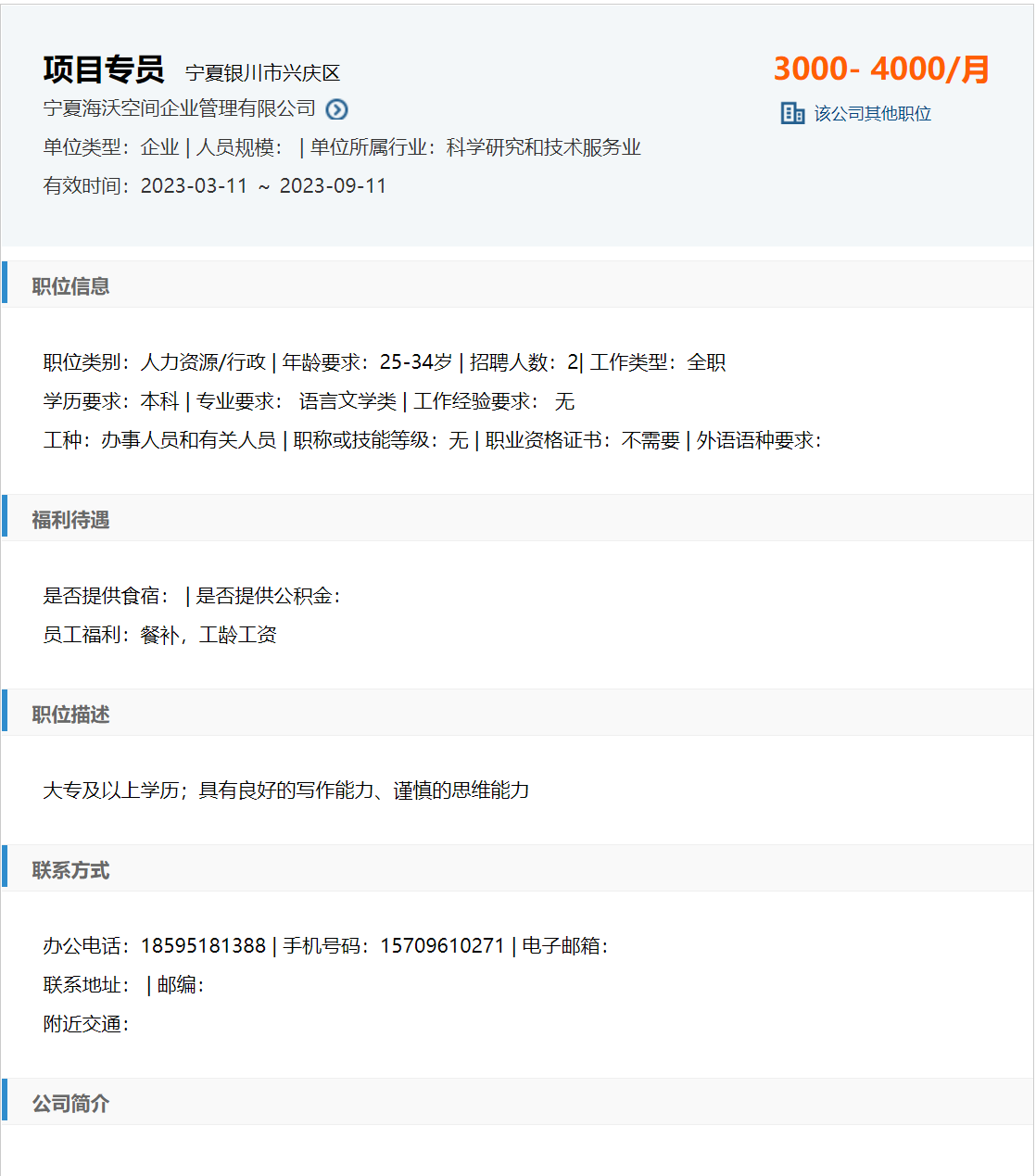 链接:http://www.nxjob.cn/nxzj/jump/web/PersonJobDetail?cb20_id=a615772fbd6211ed9de6289e97d60eee