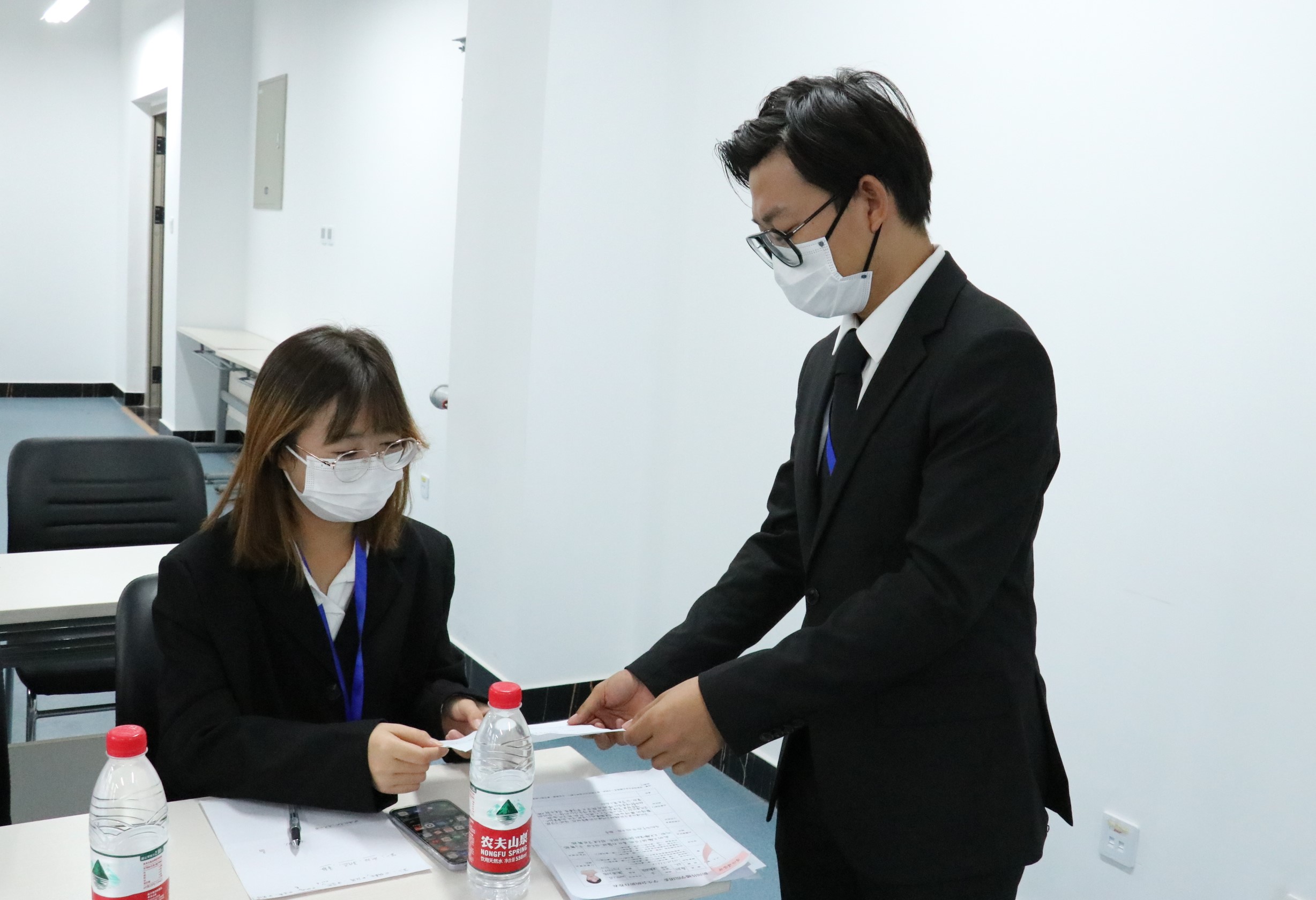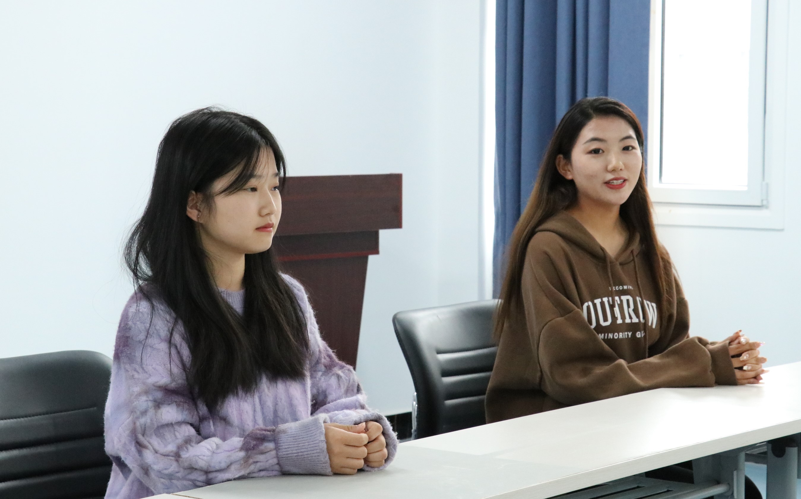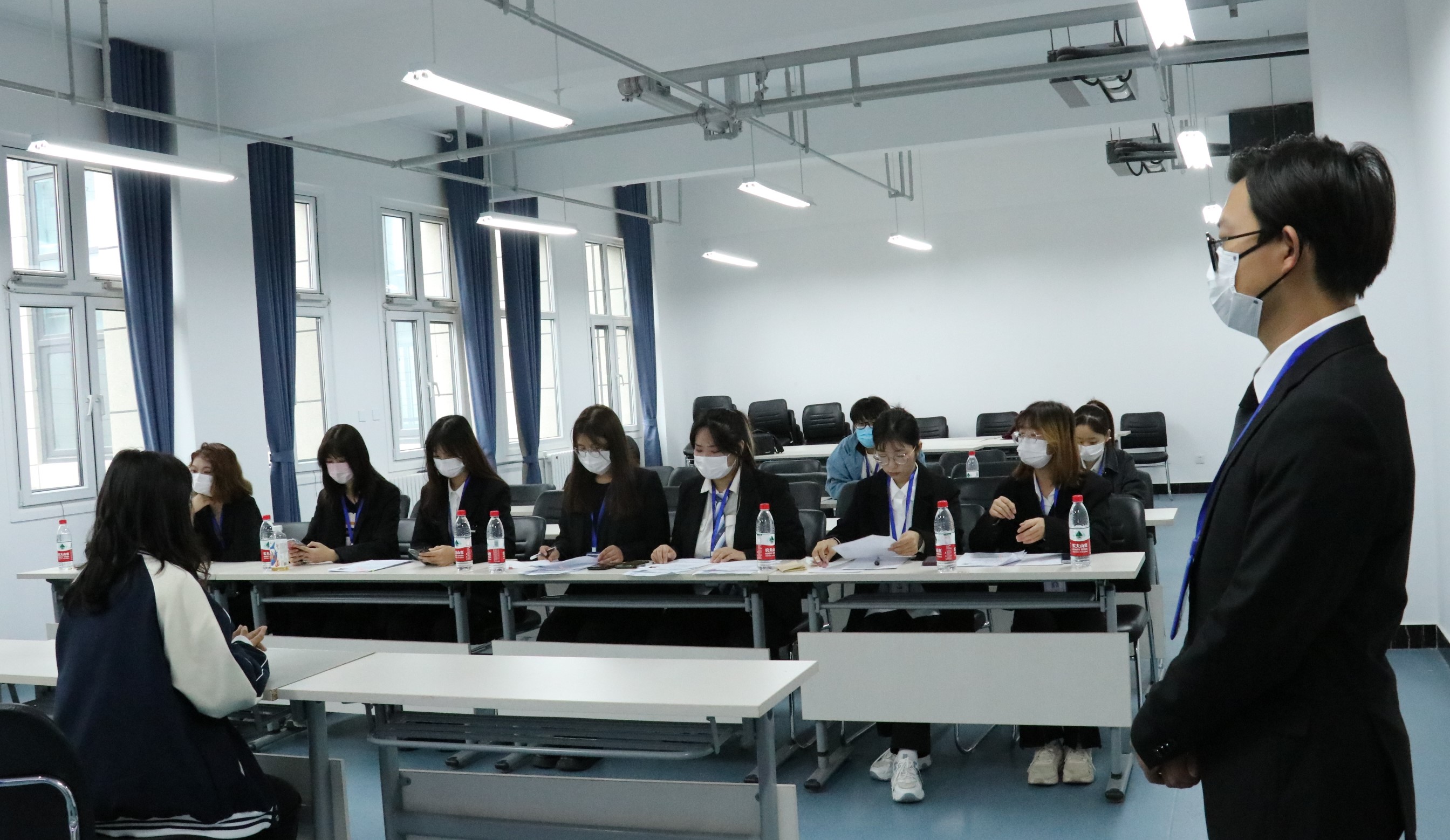 面试分为自我介绍和现场提问两个环节。同学们在场外听从工作人员的安排有序候场,依次面试。“评委们”根据面试者的个性特点、能力优势以及部门的工作要求展开提问。参与面试的同学们个个以饱满的热情积极展现自我,表达和诠释着自己对团委、员工会工作的建议与设想,“评委们”对本次面试同学的工作态度、能力素质与工作激情表示了充分肯定。