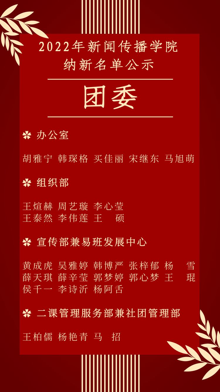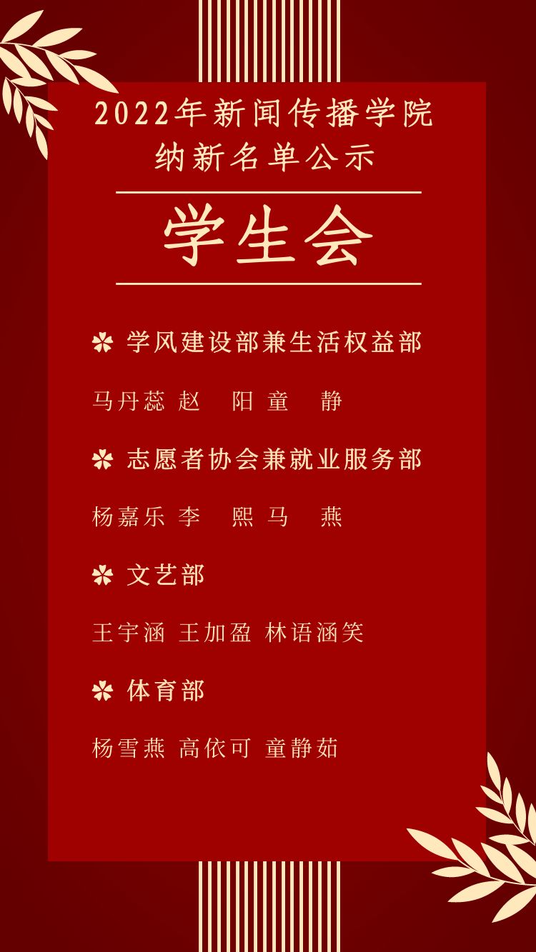 纳新名单公示