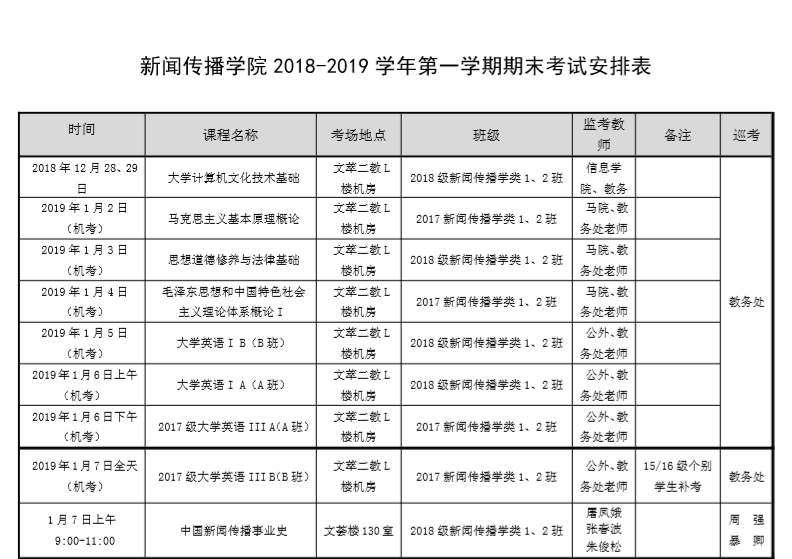 说来就来,期末考试安排表新鲜出炉!快来一睹为快吧!