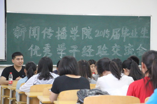 本次经验交流会共邀请了2011级新闻班优秀毕业生李明昊、纪春芳、张媛、张希玲及苏比艾提·苏力塔尼五位同学,他们结合自身经历,用独具个性的语言为我们生动形象地讲述了他们的经验。李明昊鼓励在座的所有同学说,考研并不可怕,最重要的是做好计划,每天按计划实施,切忌好高骛远,急功近利。纪春芳补充说,合适的“研友”是考研的重要法宝,要保持一个好的心态,稳扎稳打,步步为营。张媛则告诫师弟师妹们要相信自己,努力就会成功。张希玲结合自身的保研经历,与大家分享了有关保研的准备、申请及外推的相关事宜。苏比艾提·苏力塔尼则从国考方面为大家介绍了一些相关的宝贵经验及对未来要有清晰的规划。优秀毕业生的肺腑之言感染着现场的每一位同学,台下掌声不断。
