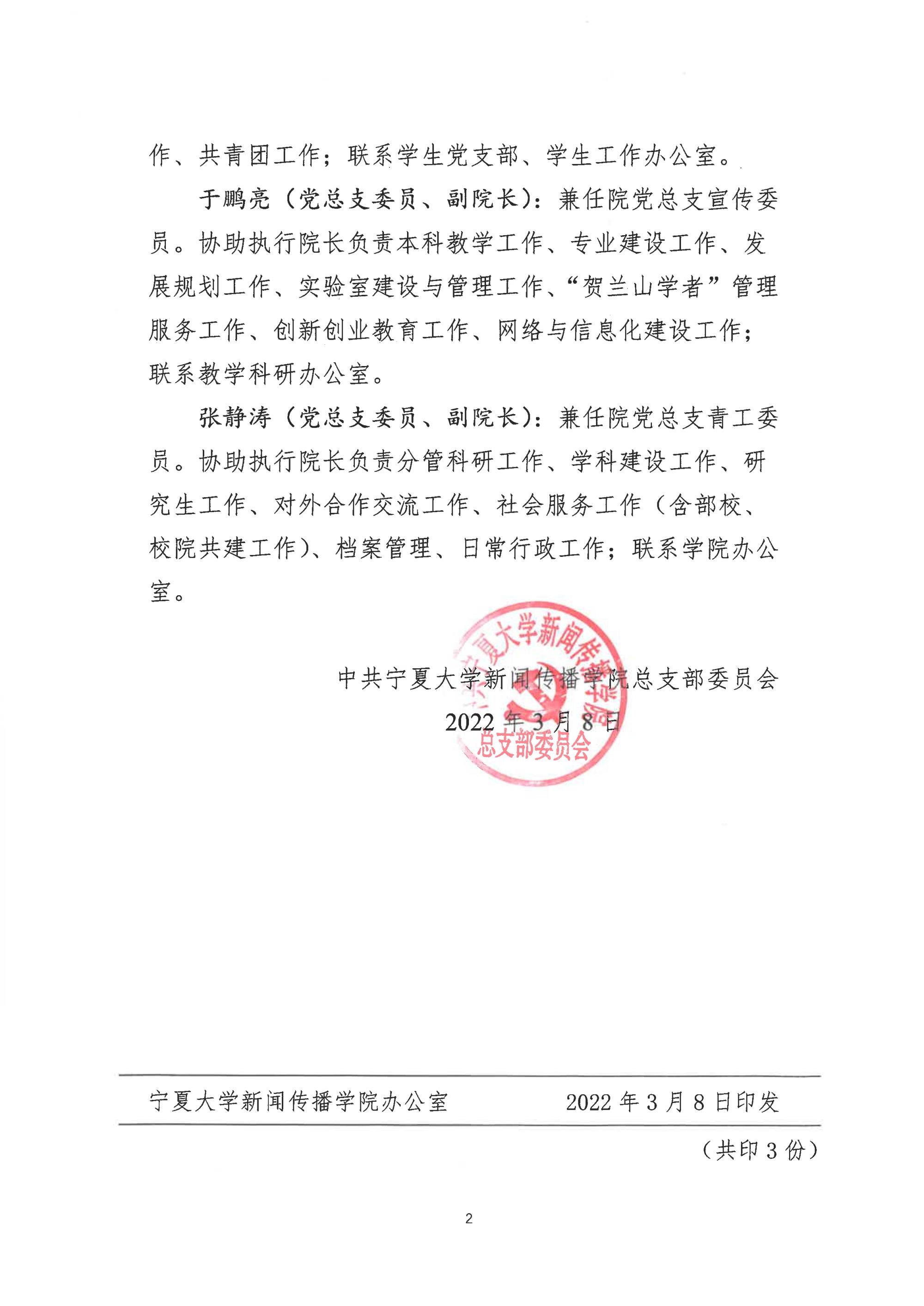 宁大新传党发〔2022〕1号 关于调整院领导分工的通知