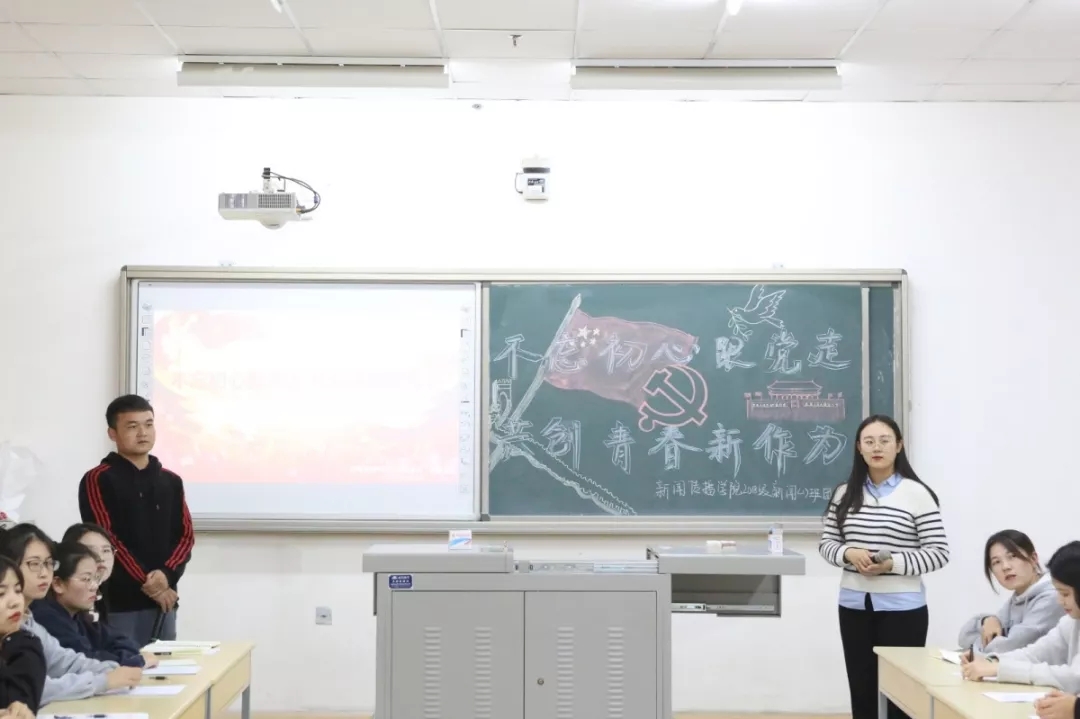 11月1日下午,开云2018级新闻1班在文荟楼406教室举办了"不忘初心跟党走,共创青春新作为"的主题班会。公司党委副书记王玉炯作为联系班级的校领导参加了班会,公司党总支书记周强、学办主任李瑾以及员工党支部书记雷丽霞一同参加了班会。班会由班长李红、团支书徐彬楠两位同学主持。11月1日下午,开云2018级新闻1班在文荟楼406教室举办了"不忘初心跟党走,共创青春新作为"的主题班会。公司党委副书记王玉炯作为联系班级的校领导参加了班会,公司党总支书记周强、学办主任李瑾以及员工党支部书记雷丽霞一同参加了班会。班会由班长李红、团支书徐彬楠两位同学主持。