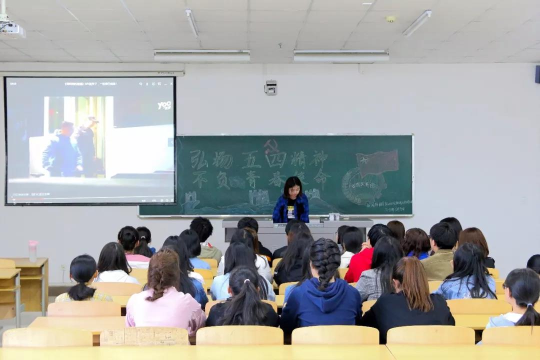 活动中,同学们观看了“纪念五四运动100周年大会”视频,并聆听了习近平总书记的重要讲话。两位团支书也从五四运动的背景、经过、重要意义以及新时代青年的历史使命四方面为大家进一步阐明了“爱国,进步,民主,科学”的五四精神,鼓励同学们牢记五四精神,树立坚定的目标,练就过硬的本领,并提升自己的道德修养,成长为具有深厚家国情怀和伟大创造力的新时代青年人。