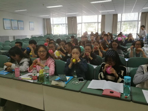 讲座一开始,为了缓解同学们羞于谈“性”的尴尬气氛,徐老师和同学们开展了吹气球的活动,活跃了讲座现场的气氛,也引发了同学们的积极互动,讲座在欢快的气氛中展开。