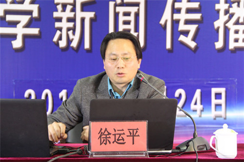 徐运平教授以自己从事新闻职业的体会为切入点,围绕“人民日报的媒体推进与融合”的话题,着重阐述了新闻客户端的运营新特点以及新媒体时代的呼唤。他强调,新闻工作者要有为人民服务的担当意识,要走基层、下基层,做到贴近实际、贴近生活、贴近群众。