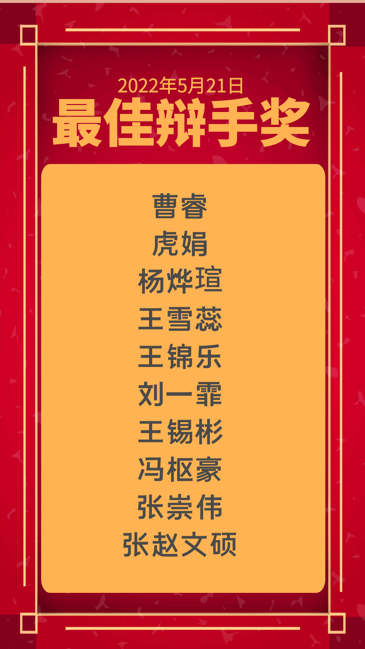 (“辩·变”辩论赛 最佳辩手奖)