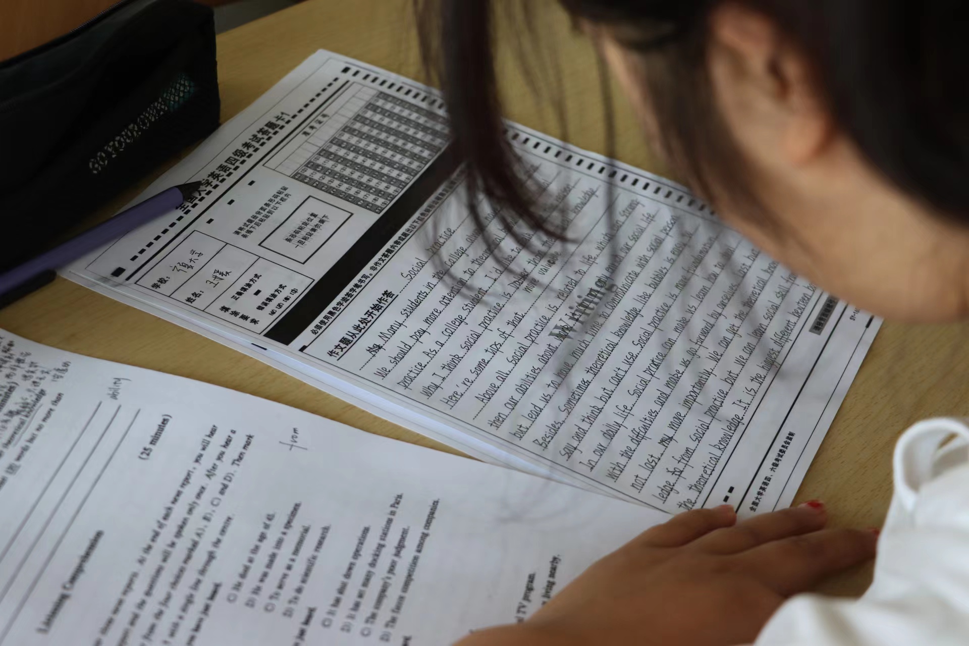 模拟考试前,公司学风建设部工作人员提前将试题印刷装订完毕,并安排好场地。据悉,本次模考严格遵照全国老员工英语四六级考试大纲标准,完全模拟正式考试的规范流程,在考验考生的词汇量、句型以及阅读理解等对英语基础知识掌握情况的同时,对考生把握考试时间、心态调节等应试能力也进行了培训和考验。考试结束后,监考人为考生分发答案,考生们及时校对,核算分数。