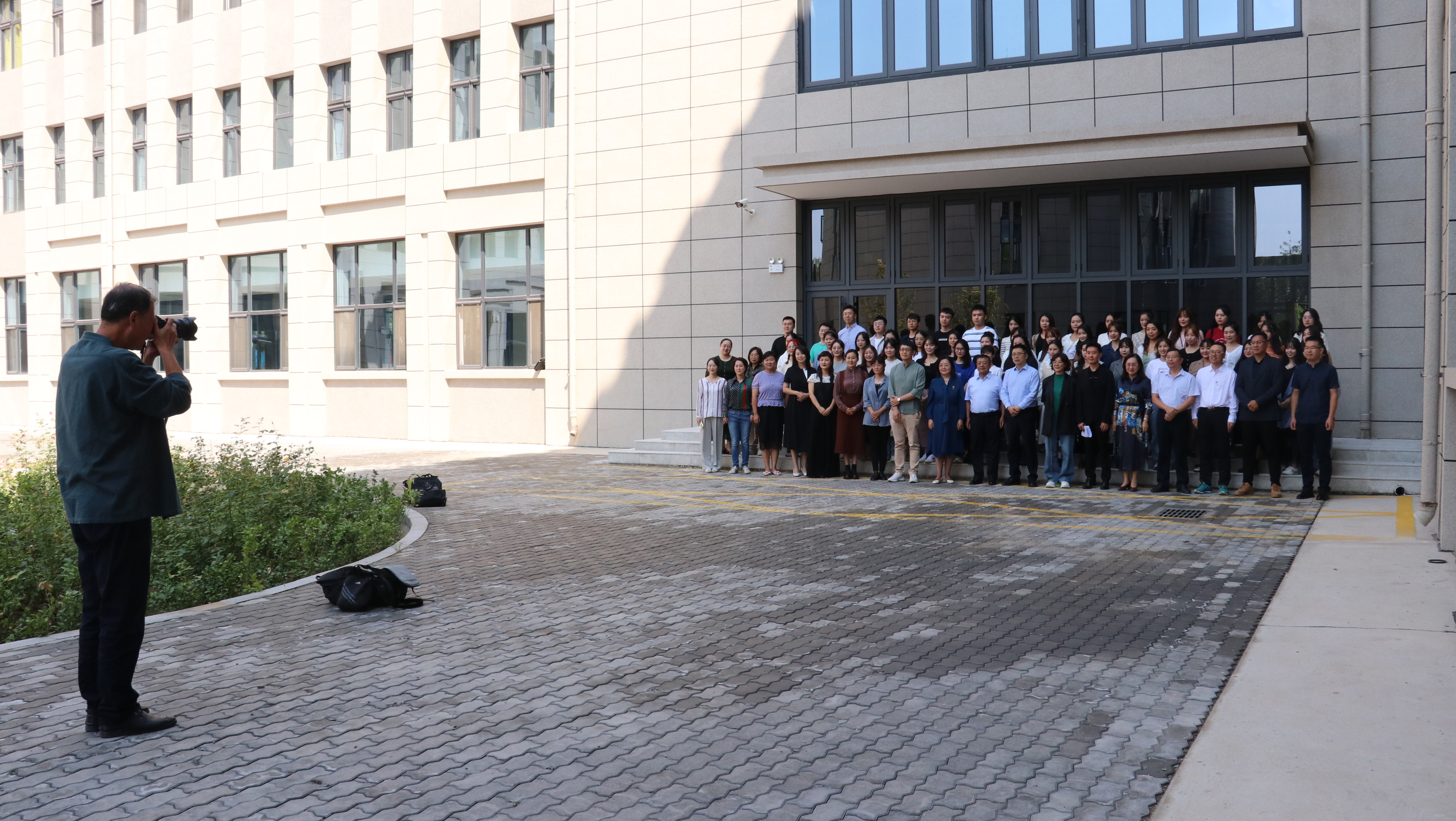 “准备好,三二一”,“咔嚓”,清脆的快门声定格了一张张崭新的面孔,在飒爽秋风中,48名研究生同学进入了学习生涯新阶段。