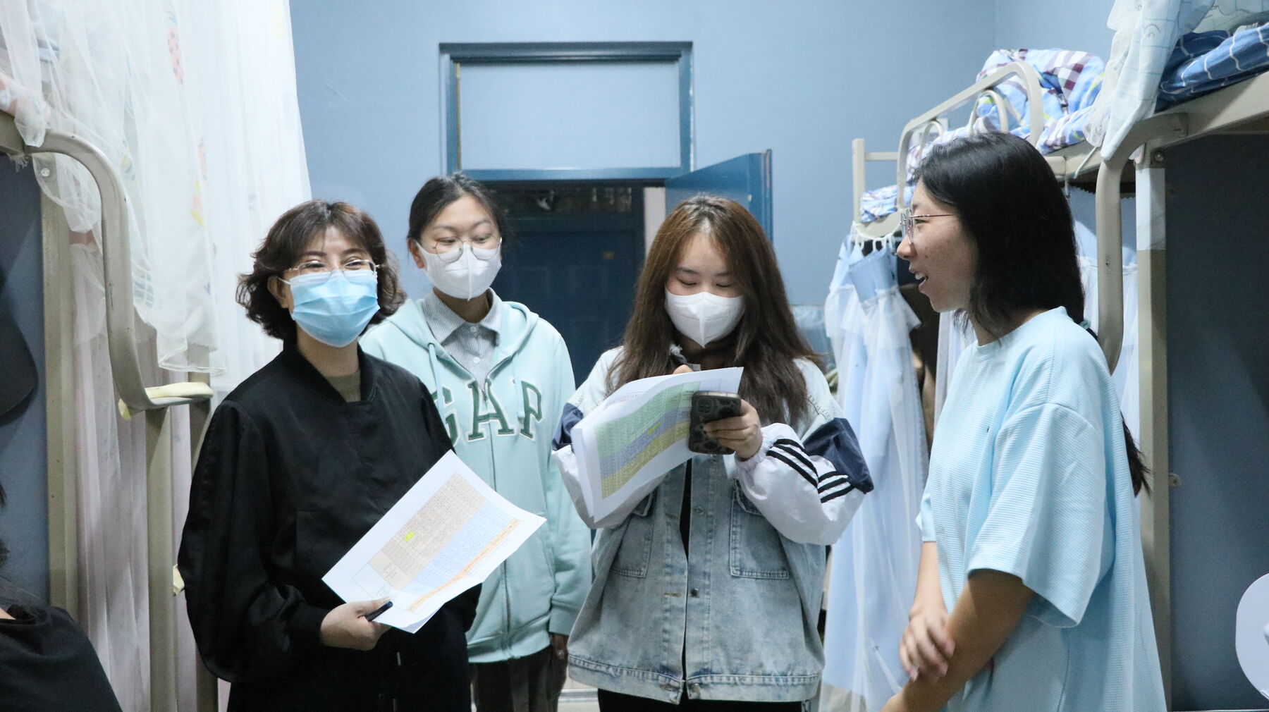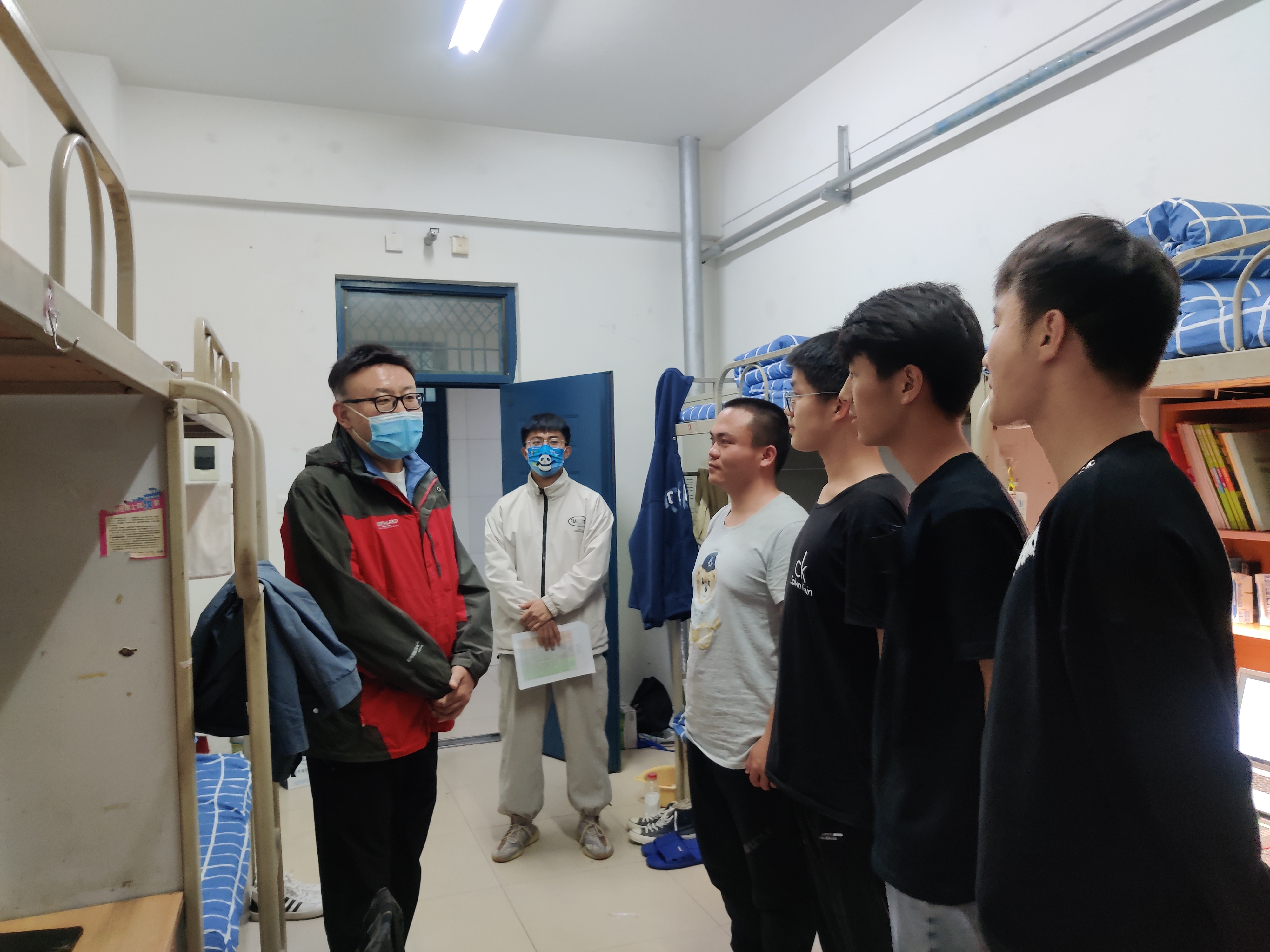领导们深入宿舍,与同学们展开亲切地交谈。潘瑞十分关心同学们在防控期间的生活状况,细致询问大家在生活中遇到的问题,并为同学们在疫情防控期间如何保持学习效率及质量提出了建议。潘瑞叮嘱同学们要遵守规定、注意防护,同时也要认真学习、保持积极健康的心态。大家共同努力,才能一起营造安全有序的校园环境。