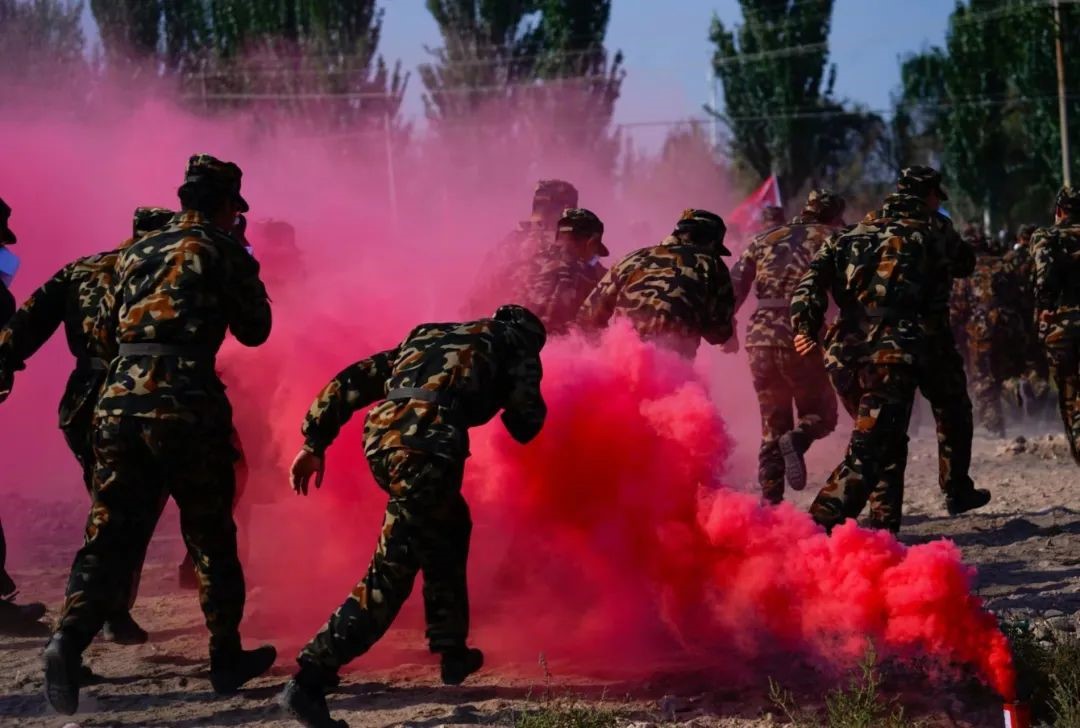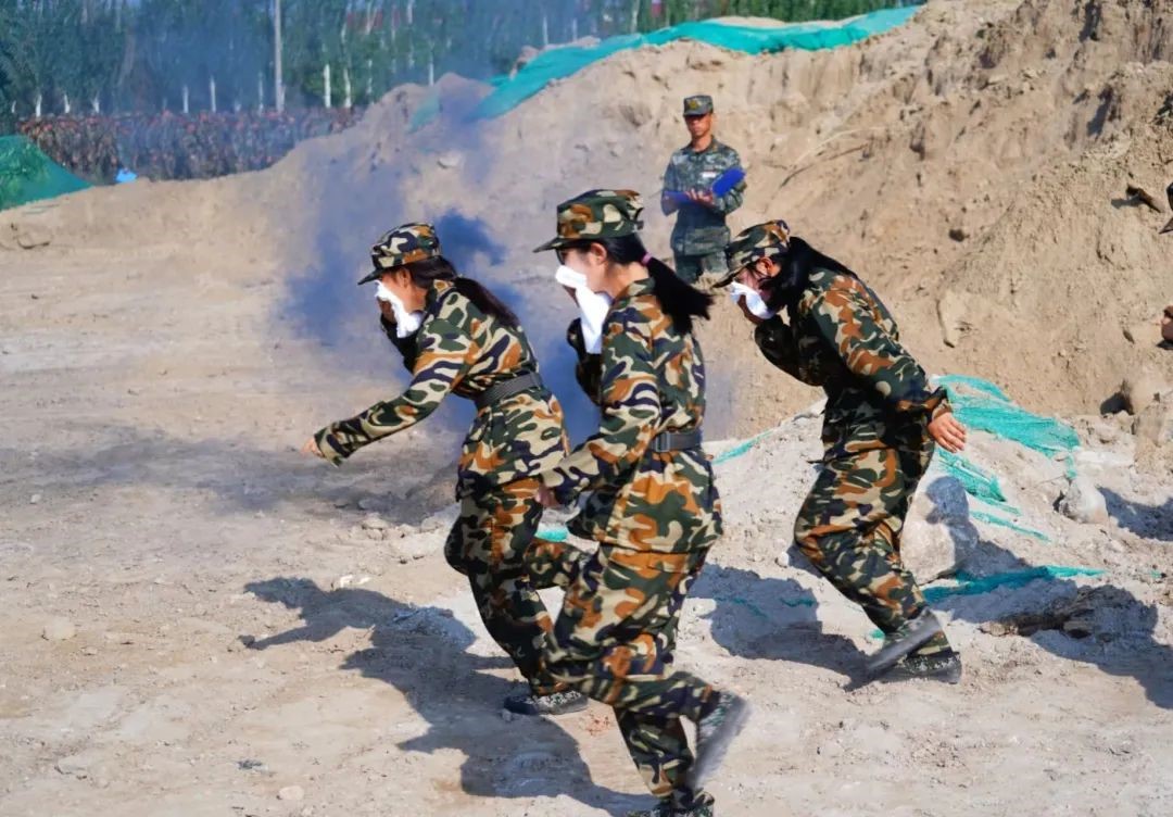 微冷的清晨,2022级的宁大学子拉开了五公里拉练的序幕,带着对新事物的好奇和对未知的期待,我们朝气蓬勃地踏出了贺兰山校区的大门。总体的路线呈长方形,我们齐步走加小跑,气喘吁吁地抵达了第一个任务点——防空袭点。听到“呜呜”两声警报,我们迅速地趴倒在路边的潮湿的草地中,警报声停,我们带着一身泥渍和植物碎屑继续出发。进入中途,大家从刚开始的斗志昂扬渐渐到心力交瘁,终于又到了下一个任务点——传话点,一声声“掩护”传入耳中,有一种士兵真实配合的感觉。最后一个任务点是防生化点,奔进沙丘中,我们在口鼻处捂着白毛巾在坎坷的道路上和粉色的烟雾作斗争,那是黄沙漫天的挑战,也是我们这次拉练的最后一站。