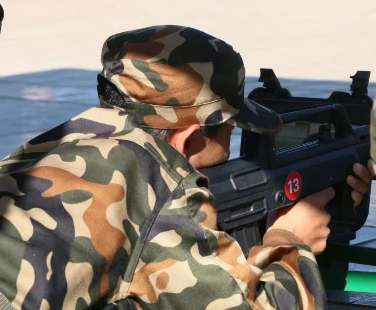 脸颊贴近枪支,右眼三点一线