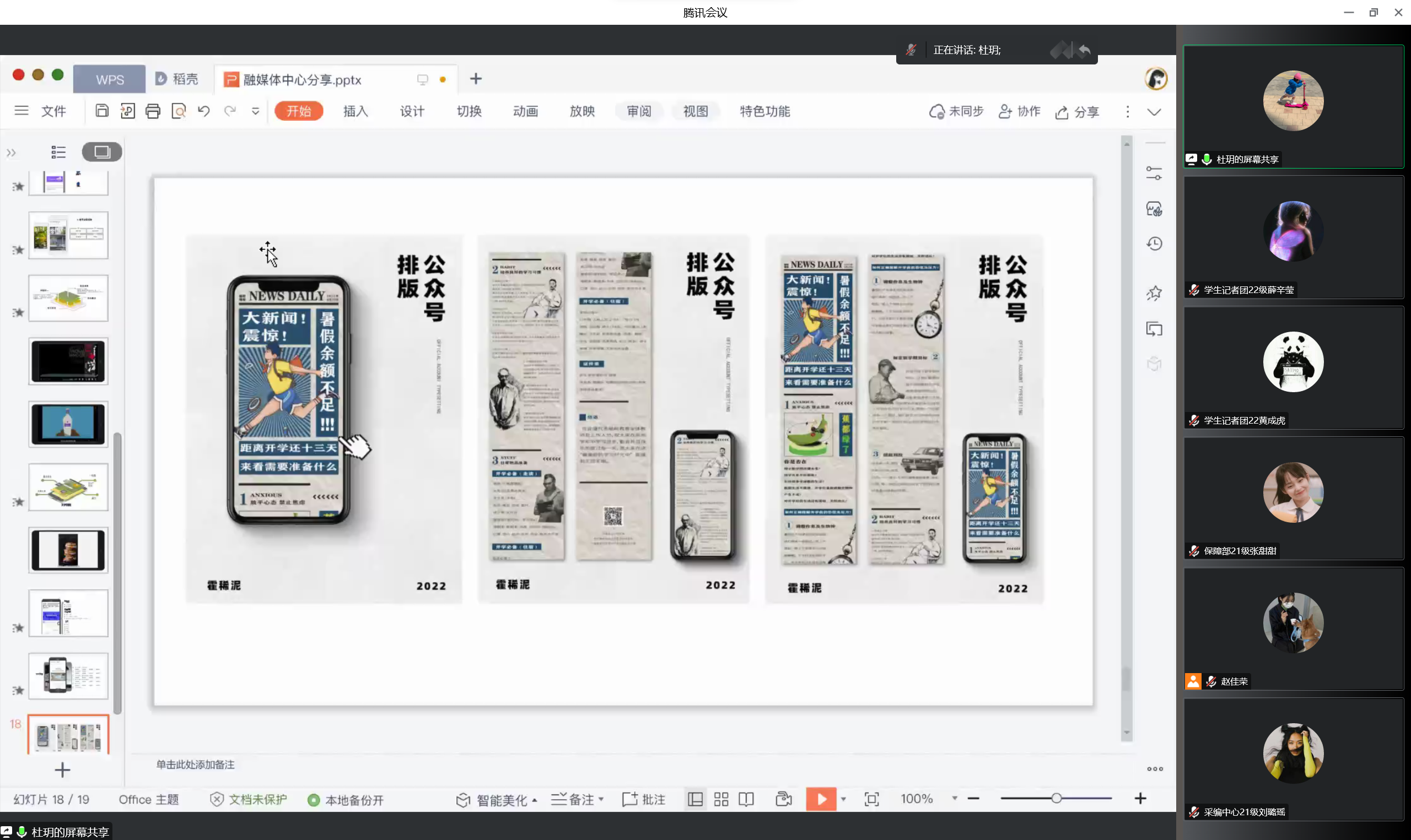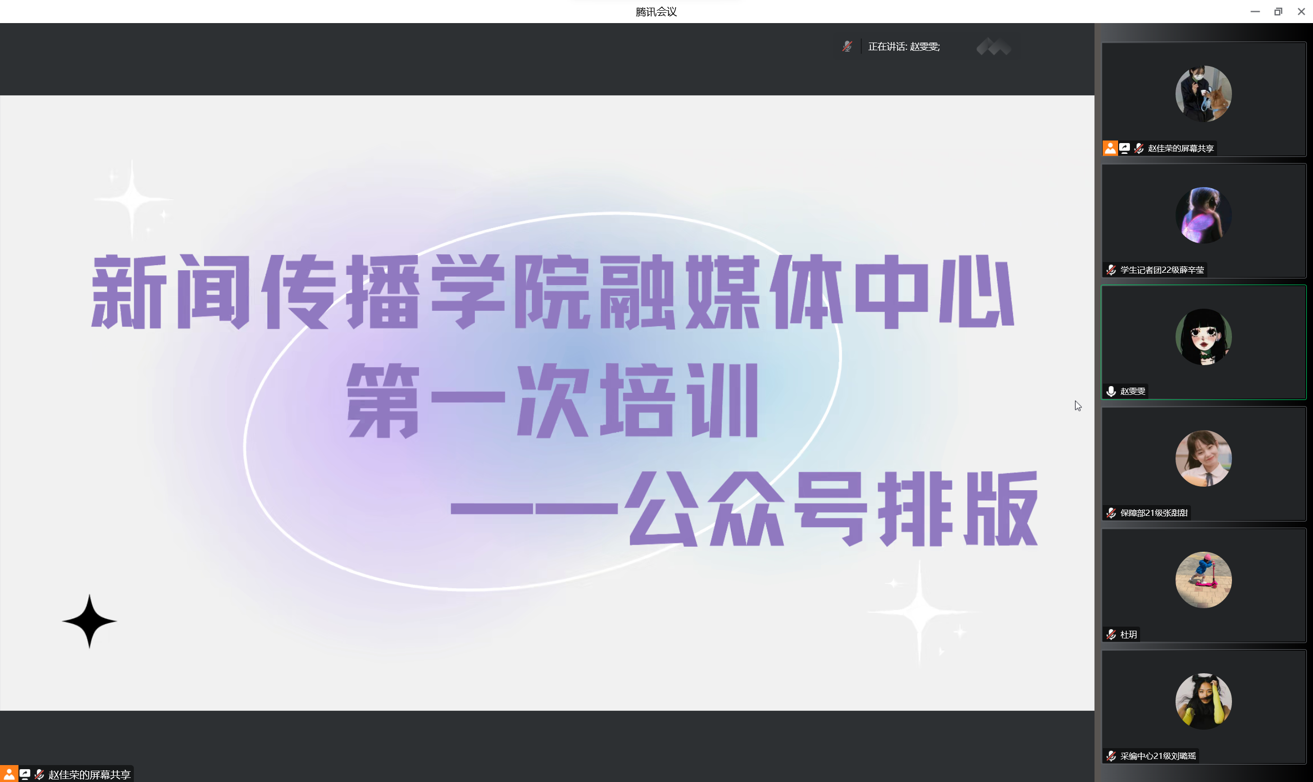 主任助理赵雯雯从理论上讲解了公众号排版的要求,主任助理武卓在实操方面展示了排版的基本操作,主任助理赵佳荣补充讲解了微信公众号在其他板块的操作方法。