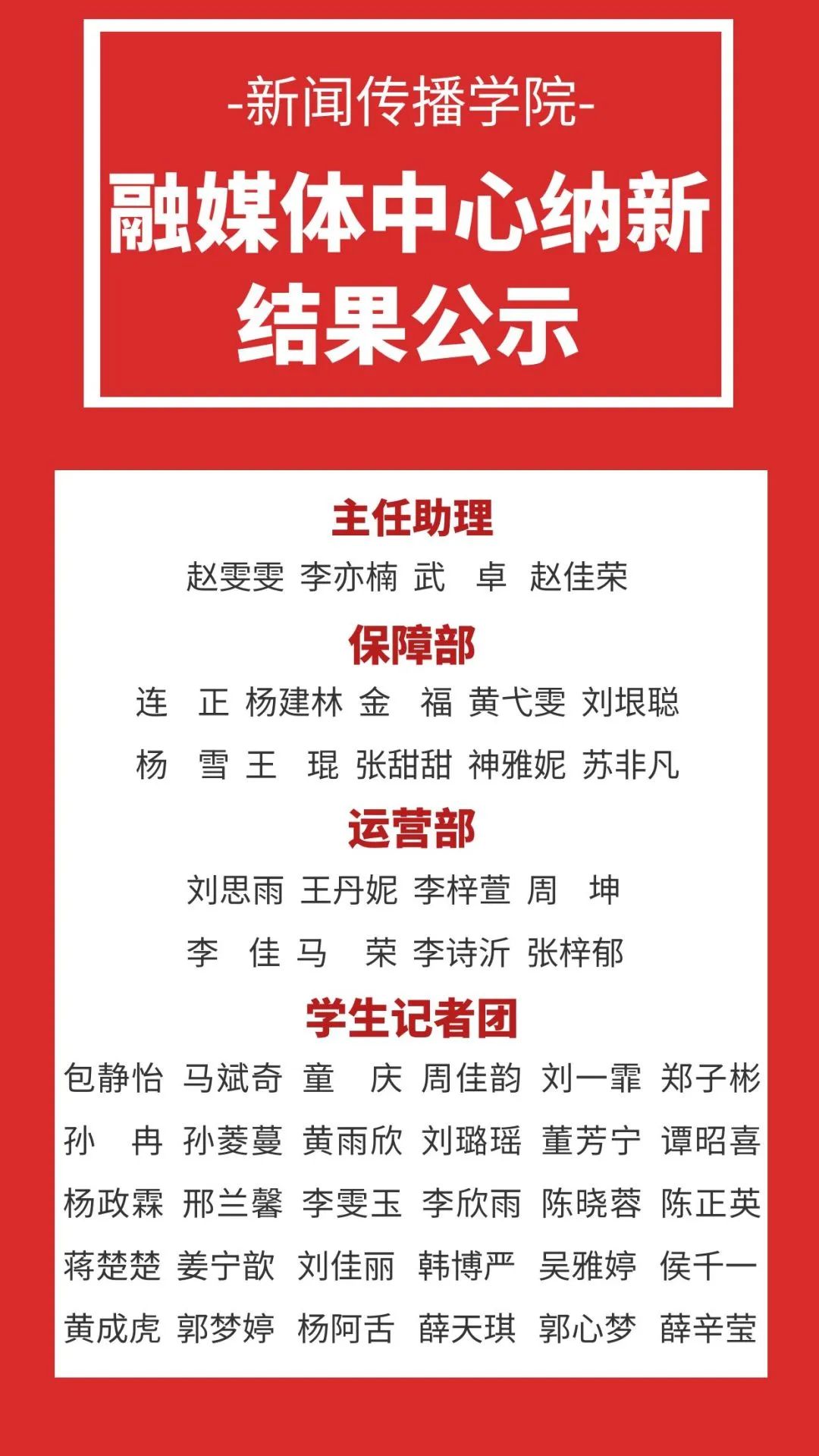 根据开云融媒体中心纳新工作安排,经过前期院团委宣传部纳新、个人申请、面试专家评分、公司党总支考核,恭喜以下成员加入我们大家庭。
