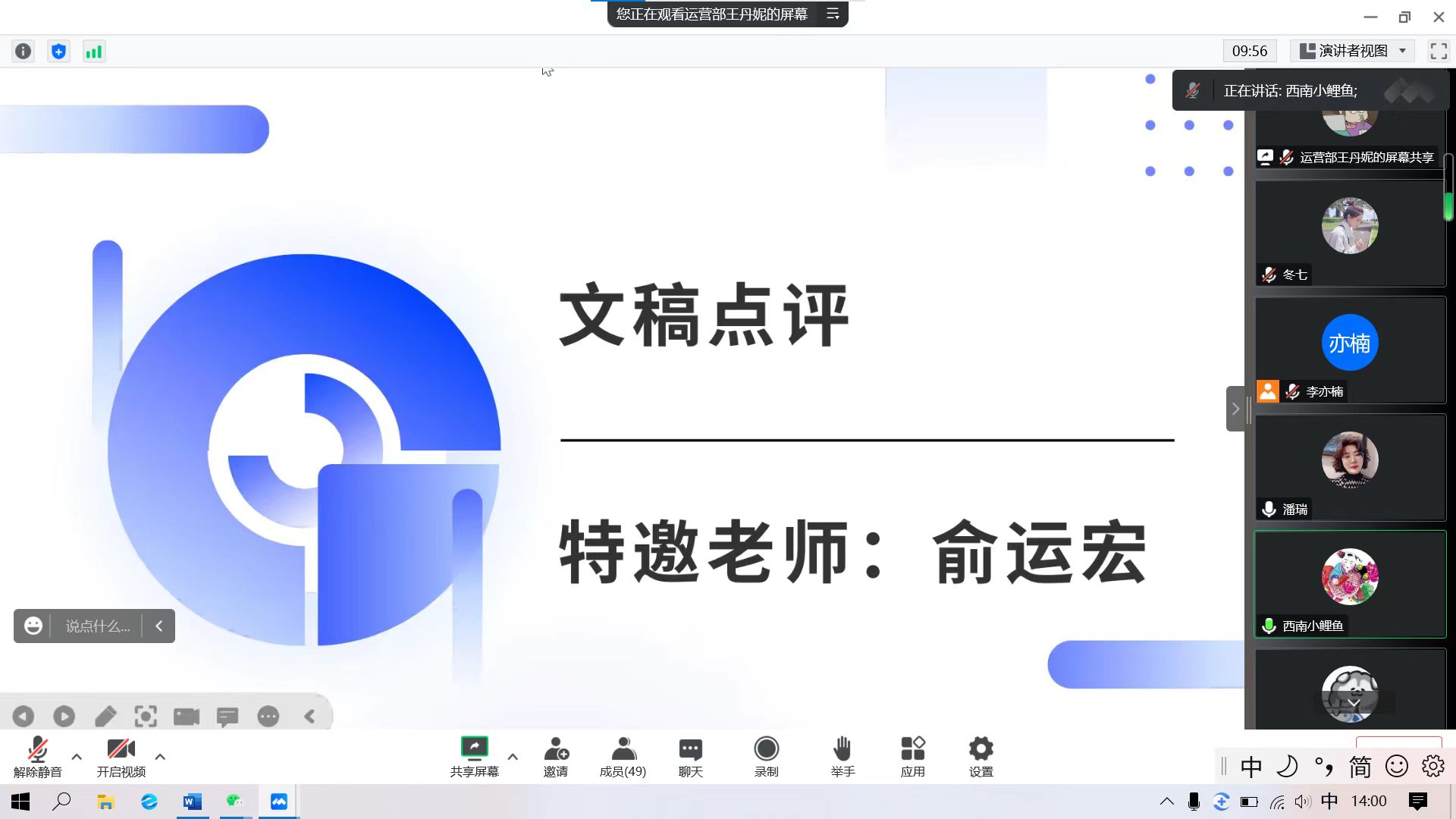 为加强和规范公司新闻宣传工作,巩固提升融媒体中心成员业务能力,公司于11月13日下午,在线上召开融媒体中心第一次新闻作品点评会。公司党总支书记潘瑞、副经理于鹏亮应邀参会,指导教师俞运宏、雷双军主讲,融媒体中心52名员工记者参加了培训。