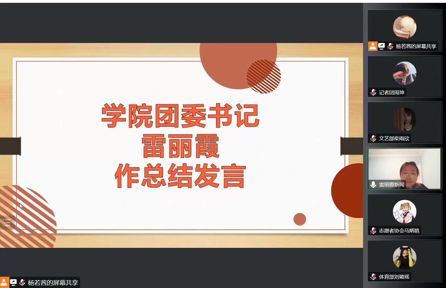 雷丽霞作总结发言,她对2022年秋季员工会的工作给予了肯定,她强调全体成员要在工作中着眼大局,注重细节,努力打造公司品牌,并对员工会及成员提出以下要求:一是要践行为同学服务的宗旨,开展结合专业优势的活动;二是要高标准要求自己,平衡好工作与学习的关系;三是要加强成员之间、成员与老师及兄弟公司组织的沟通与协作能力;四是要积极主动地研究工作,以更高的要求对待工作。最后,雷丽霞对下学期工作规划提出了要求。