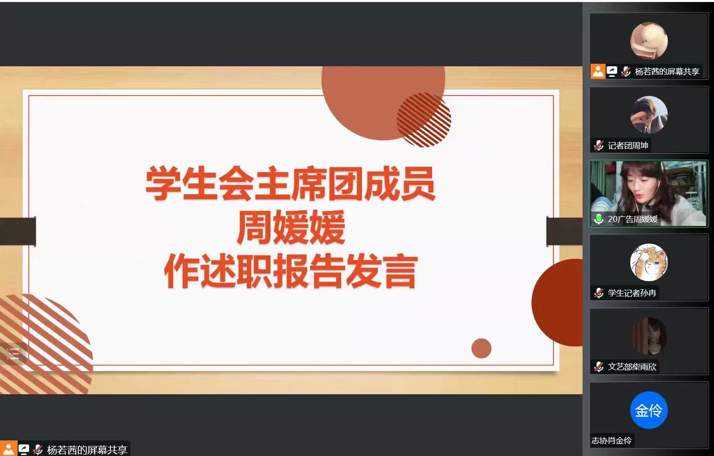 首先由主席团成员进行述职,各部门主要负责人依次述职。员工会主席团成员周媛媛汇报了本学期员工会组织的主要工作及改革情况。