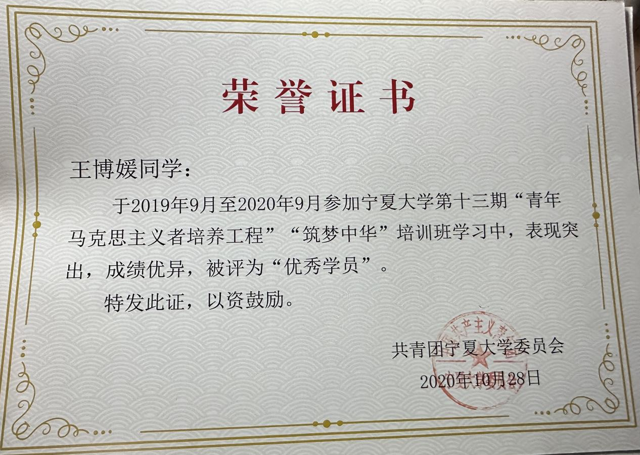 王博媛,中共党员,开云全站登录入口2018级本科生。在校期间,曾荣获国家励志奖学金、校级二等奖学金、校级“三好员工”、校级优秀共青团干部、校级优秀笔记三等奖等荣誉。现就职于固原市原州区委组织部。