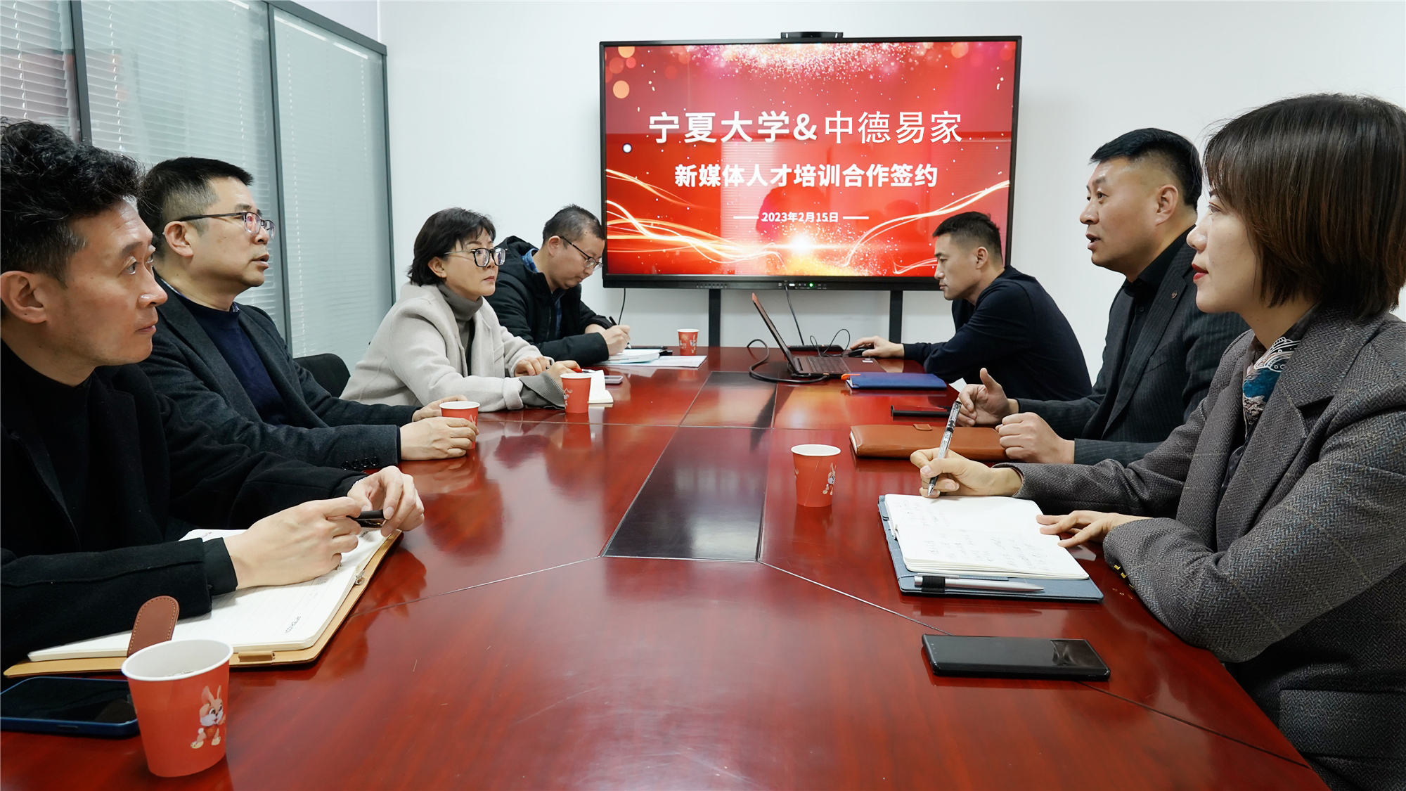 2月15日下午,开云全站登录入口与搜狐宁夏(宁夏中德易家信息科技有限公司)签订新媒体(自媒体)人才培训协议。公司党总支书记潘瑞、执行经理李世举、副经理张静涛、广告系主任朱俊松,宁夏中德易家信息科技有限公司总经理董彦雨、副总经理吕文娟、视频部主任徐德宝参加了签约仪式。