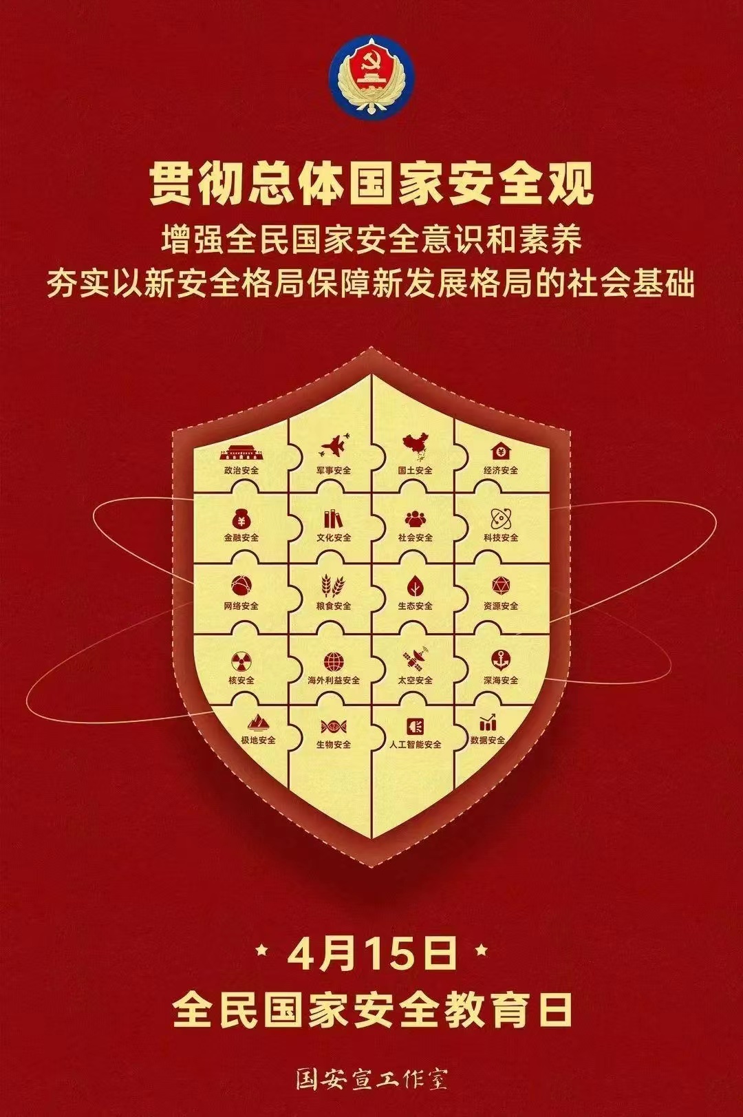 2023年4月15日,是第8个全民国家安全教育日,主题是“贯彻总体国家安全观,增强全民国家安全意识和素养,夯实以新安全格局保障新发展格局的社会基础”。