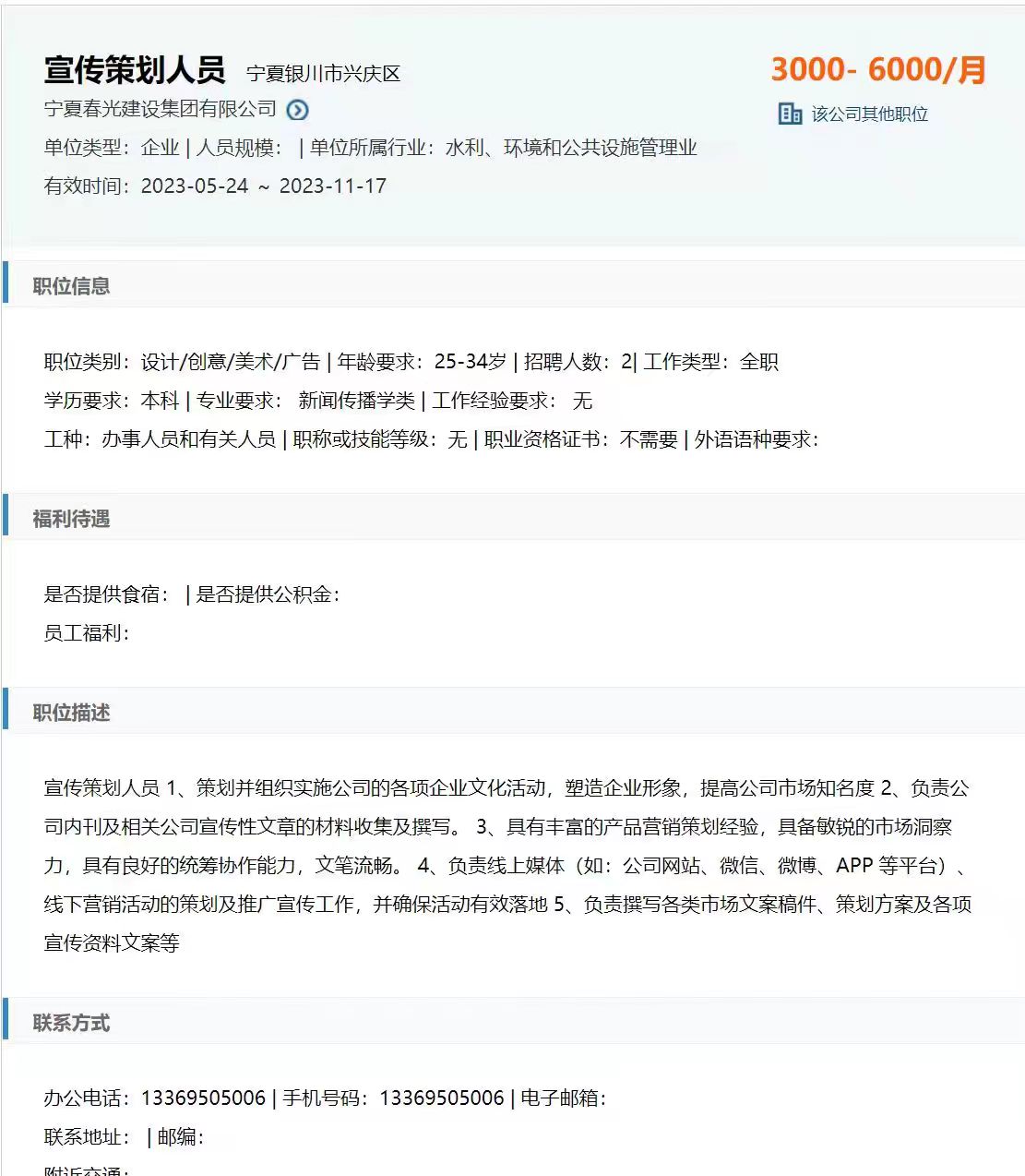 链接:http://www.nxjob.cn/nxzj/jump/web/PersonJobDetail?cb20_id=9bae7854de7c11ed9de6289e97d60eee