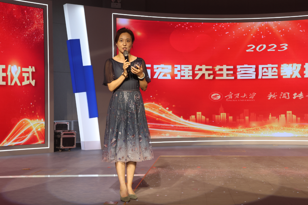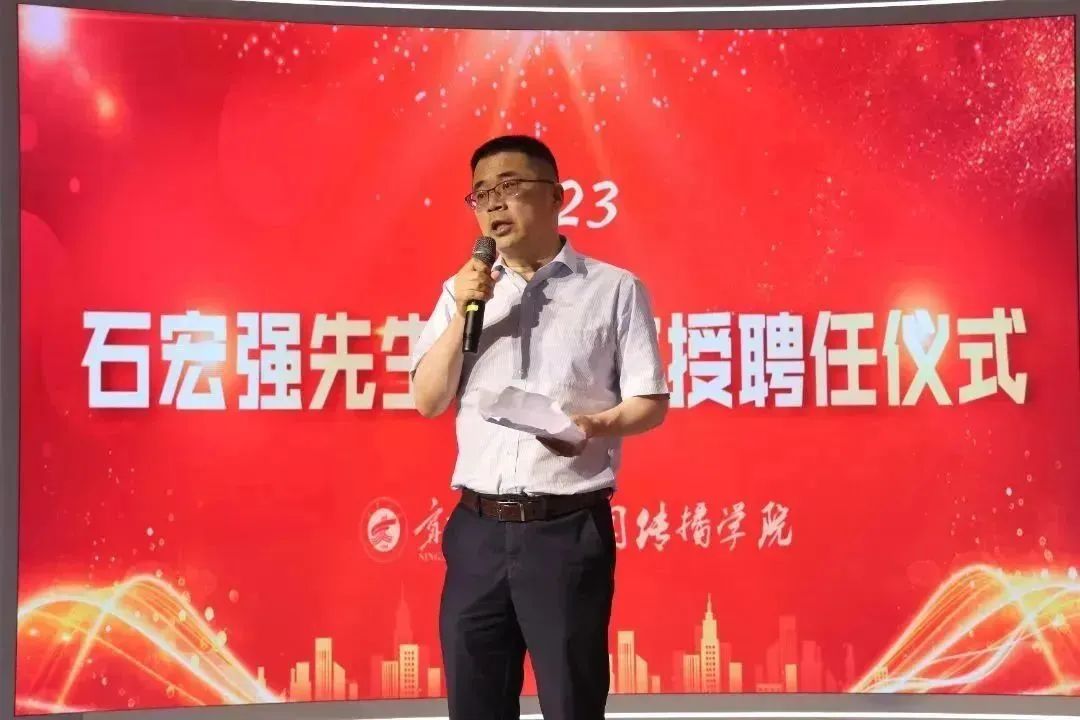 6月21日下午,公司在演播厅举行外聘导师聘任仪式,特聘石宏强为公司客座教授。党总支书记苏洁主持聘任仪式,执行经理李世举、广告系系主任朱俊松出席会议。