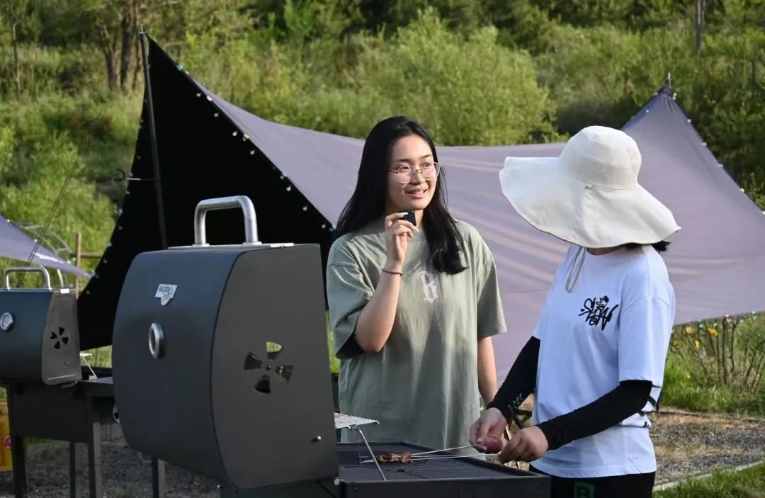 现代化的露营场地与周边传统农户碰撞出激烈的火花,小组成员通过宁夏广播电视台公共频道进行慢直播,共有1936人观看。同时,组员积极进行实地采访,了解到当地通过充分开发旅游资源而实现乡村振兴的战略规划。