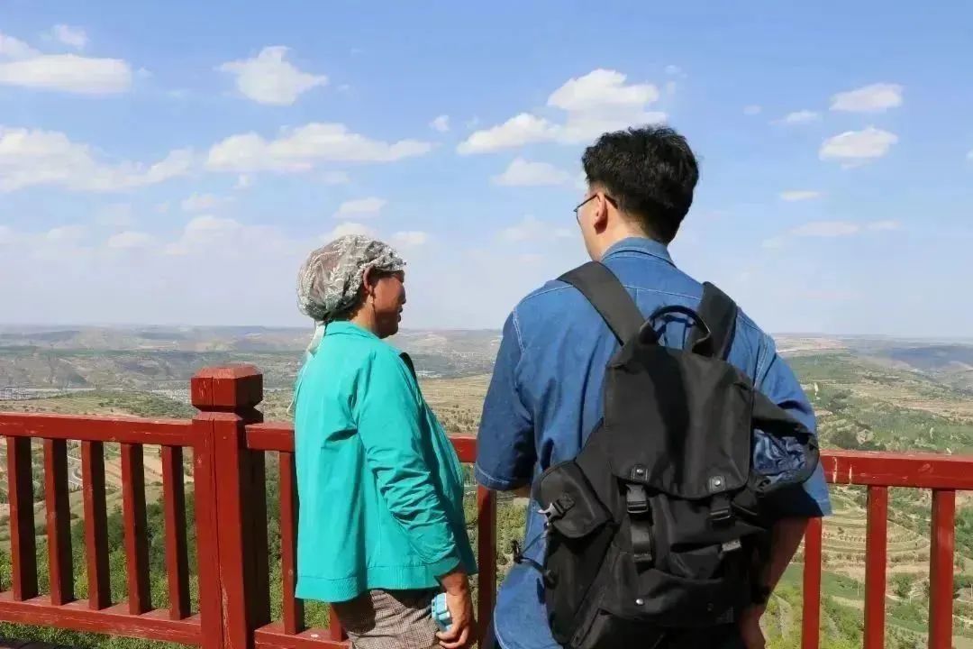 彭阳实训小组首先来到青云湾梯田公园。在腾达公司负责人马瑞和彭阳县融媒体中心记者徐丹彤的带领下,师生参观了青云湾梯田公园,了解到当地的变化之大:道路通了——公路硬化到户,打通农户通往外界的路;用水方便了——滴水灌溉走进千家万户;生活好了——红梅杏、牛羊肉、冷凉蔬菜特色产业带动当地走向富裕幸福之路。