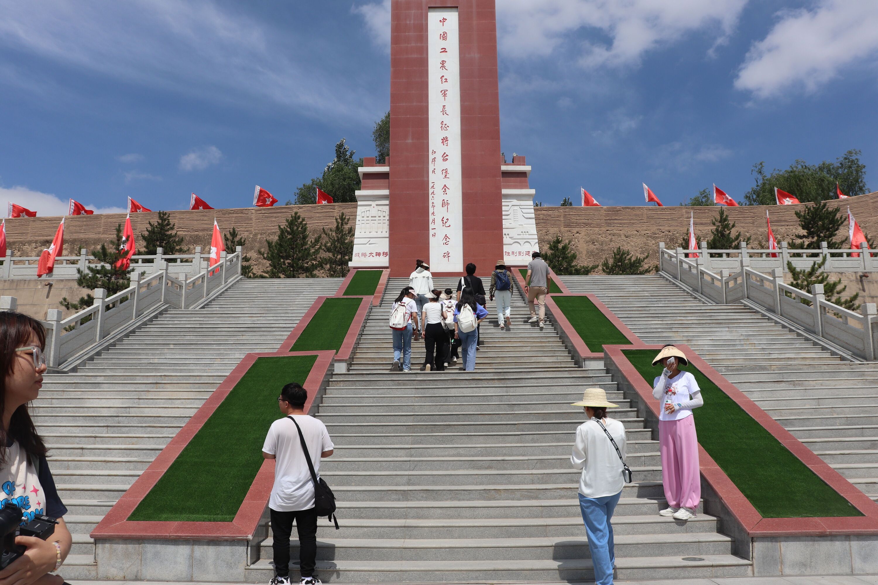 彭阳县组7月10日一早,彭阳实训小组首先来到金鸡坪梯田公园,看到了彭阳县生态治理的成效,高标准农田建设让过去的小梯田出落得更大方、更美丽,也让绿水青山焕发出新的价值,旅游观光给乡村振兴注入新的活力。随后师生一同来到乔家渠红军长征毛泽东宿营地采风,切身体验集红色旅游、田园休闲为一体的爱国主义教育基地和民俗风情园,了解到作为革命历史重要场所的红色景点的建设成果。