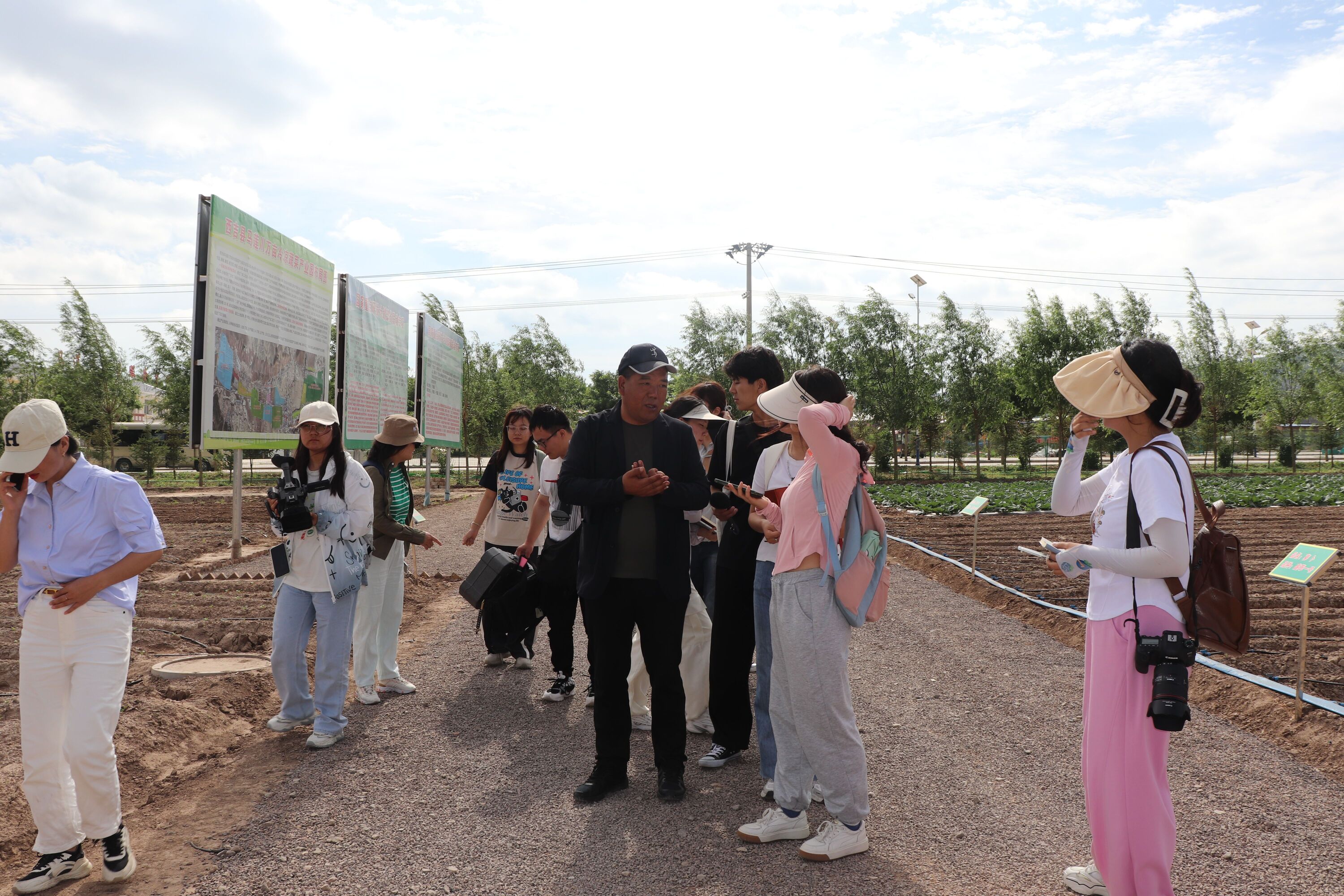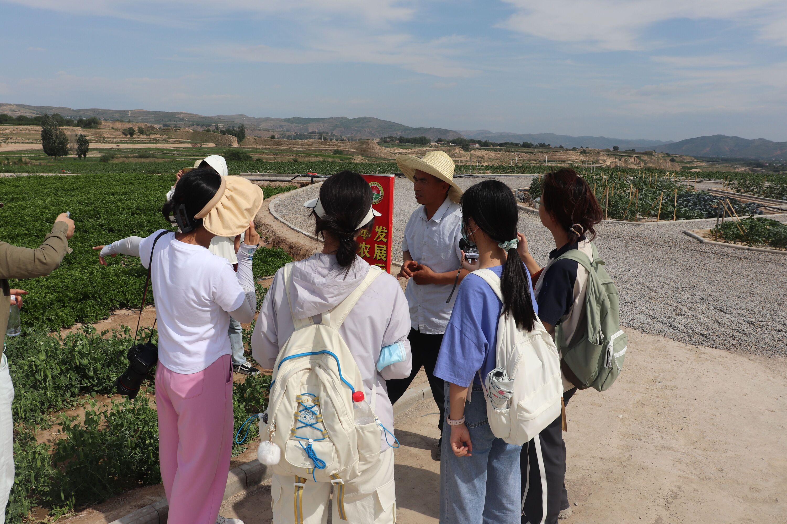 西吉县组7月10日,西吉分队12名员工跟随指导老师前往西吉县马莲川万亩冷凉蔬菜产业园、将台堡、将台堡镇火集村等地。