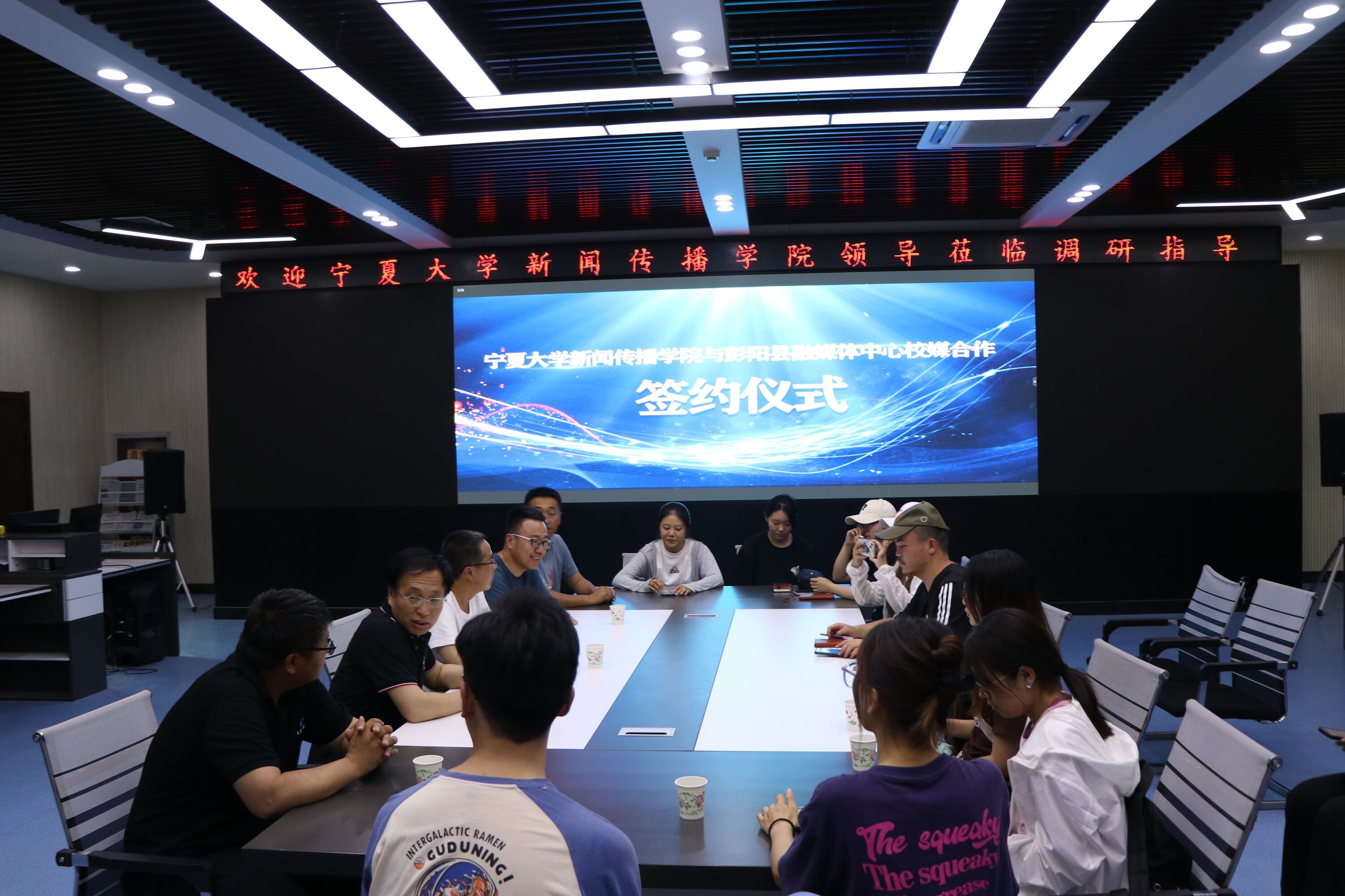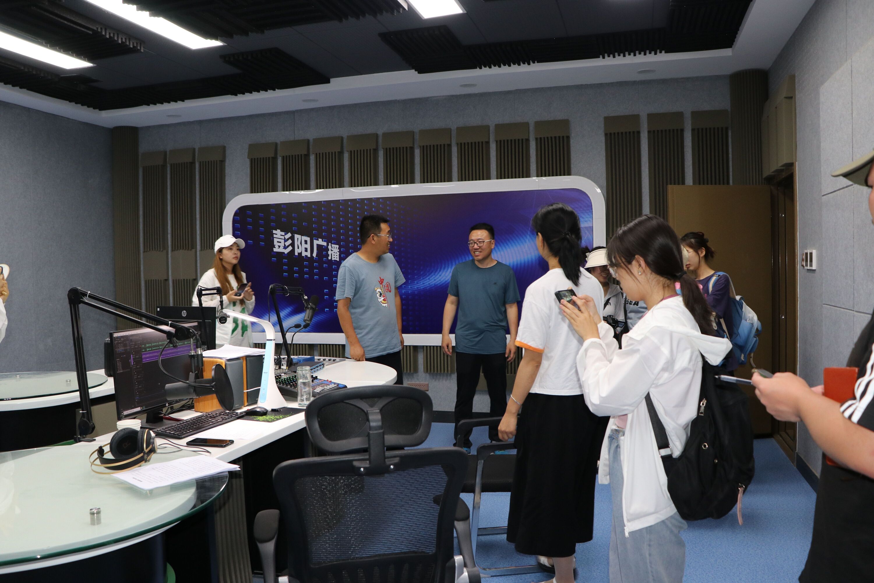 参观结束后,实训小组一行来到彭阳县融媒体中心实地参观了新闻制作室、录音室、新闻导播间、新闻直播间等主要功能区。融媒体中心的工作人员与员工们进行了面对面的交流,帮助员工了解融媒体中心形成发展过程以及工作机制。