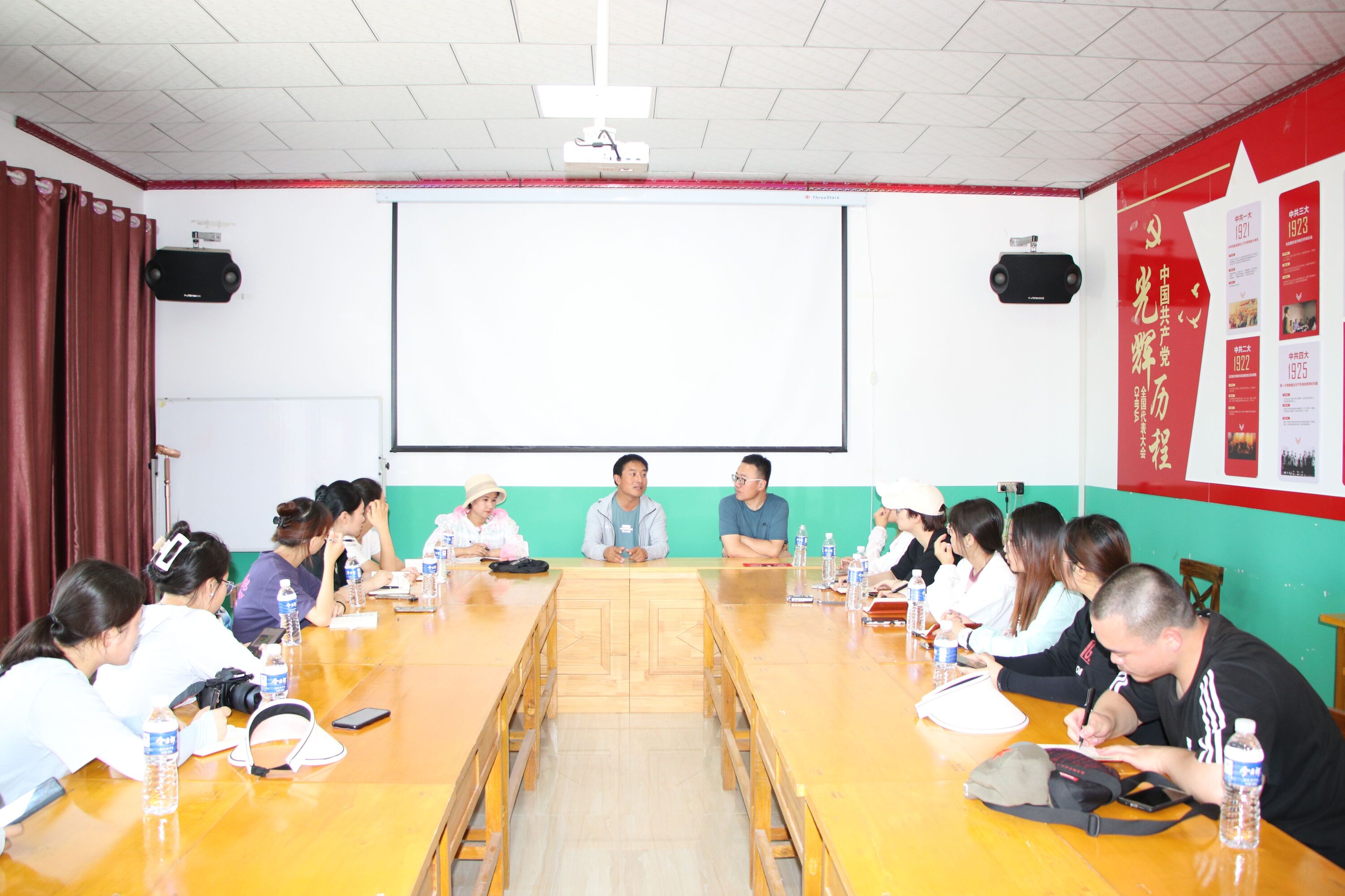 在将台堡,师生共同参观了将台堡红军会师纪念馆。在火集村,村支部书记火彦红讲述了该村的发展全貌。经过讨论确定选题之后,各组便进入梯田、村民家中、村委会展开实地采访,就火集村的党建引领、党员故事、产业发展三方面进行深入采写。