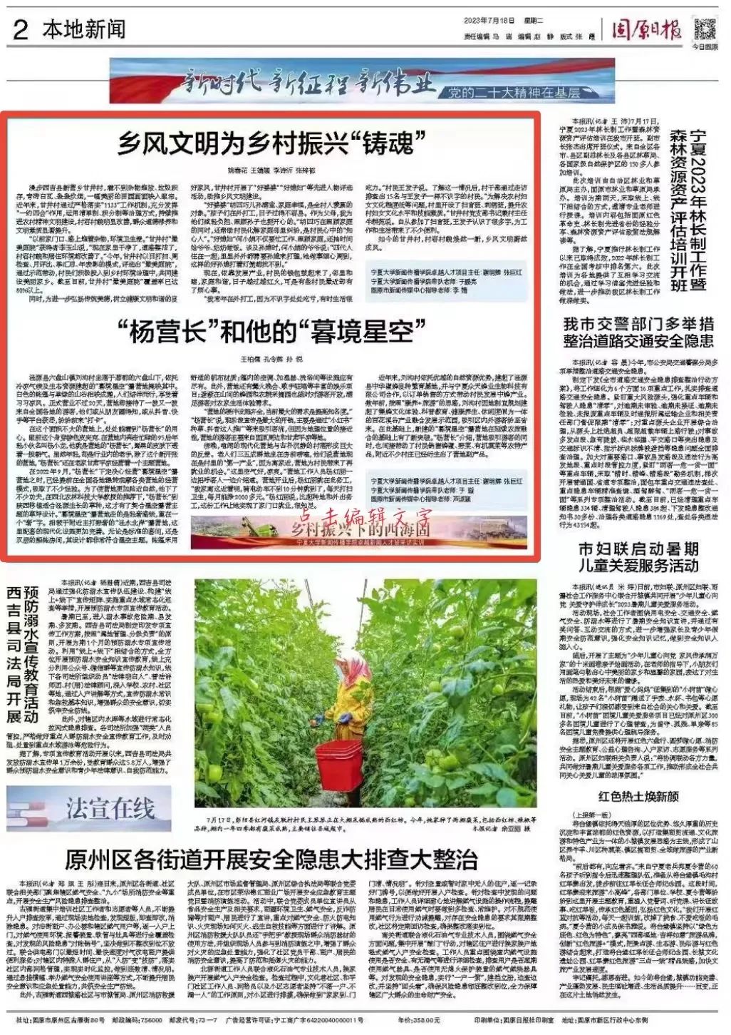 7月18日《固原日报》“乡村振兴下的西海固——开云全站登录入口卓越新闻人才班采访实训”专栏第二期继续刊发2022、2021级卓越班实训成果。