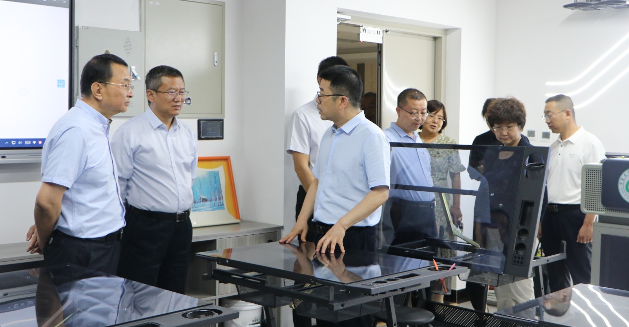 座谈会前,陈旭东副厅长一行和王忠静副董事长共同参观调研了新闻实验大楼,直观了解了公司科研与人才培养的硬件条件,李世举经理介绍了公司公司发展情况和办学理念。